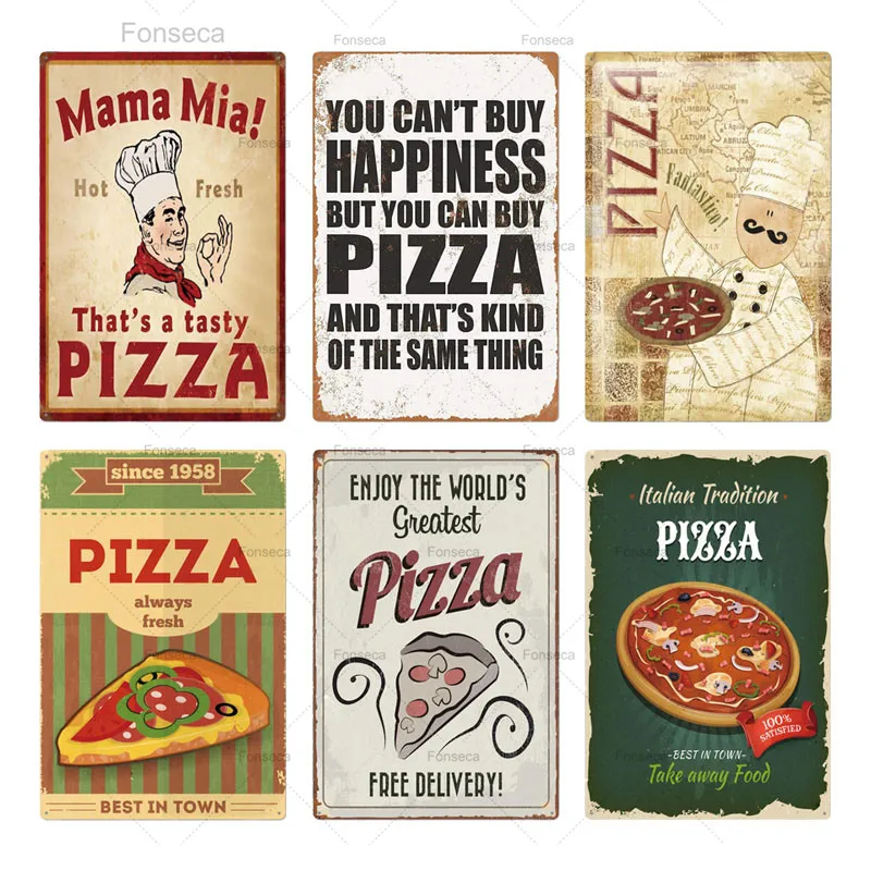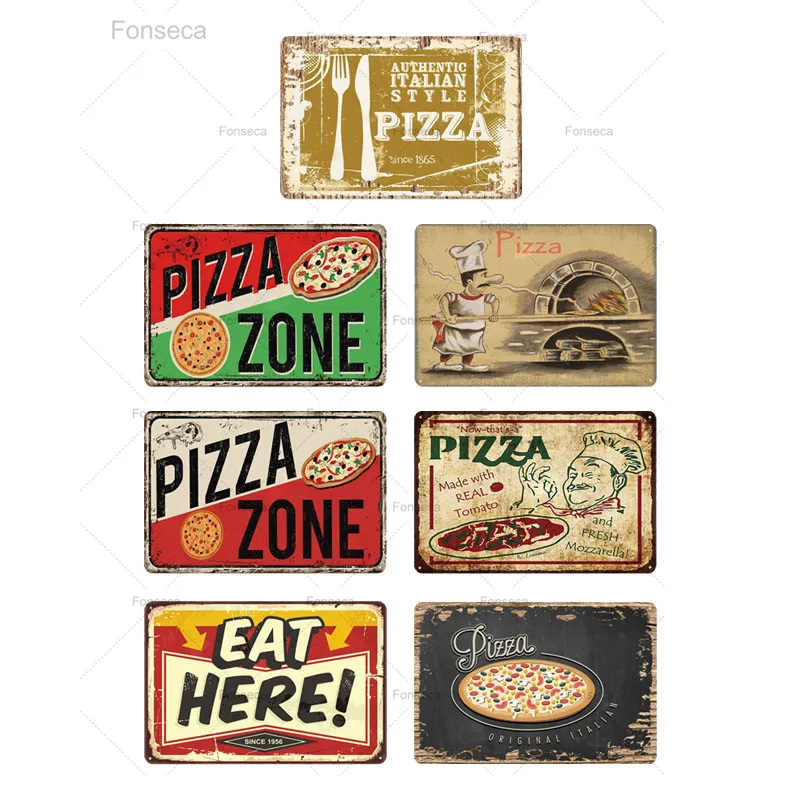Зона для пиццы, металлический винтажный металлический знак, Настенный декор для кафе, бистро, ресторана, зона для пиццы, Оловянная табличка