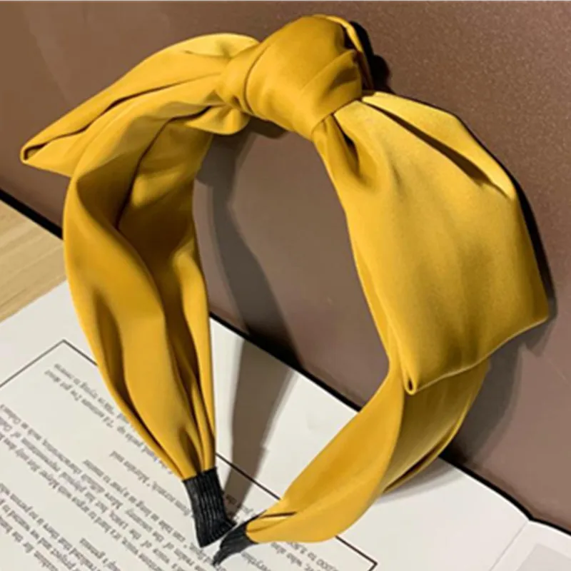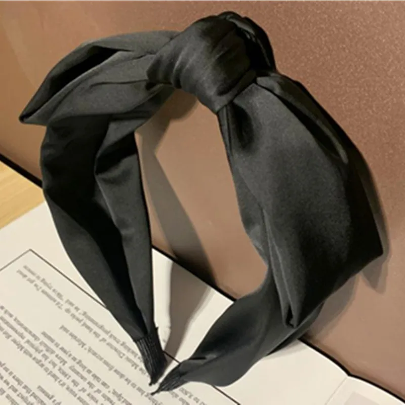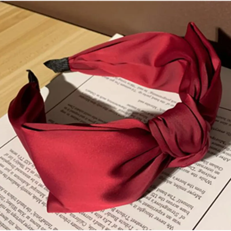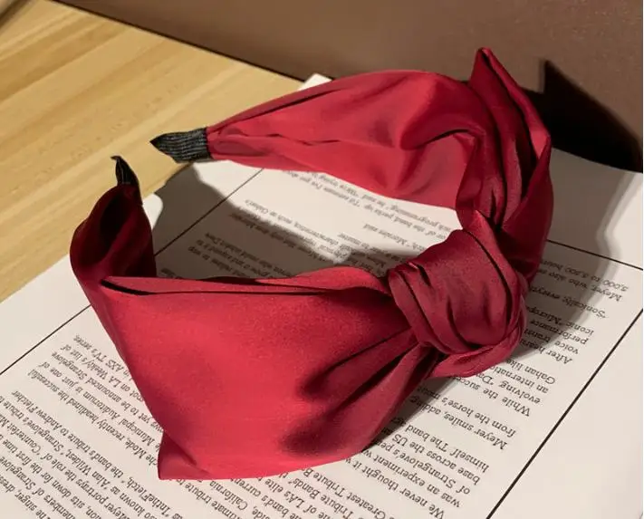 Ободок для волос Атласный Женский, элегантный однотонный бант винного цвета с бантом, украшение для волос для взрослых