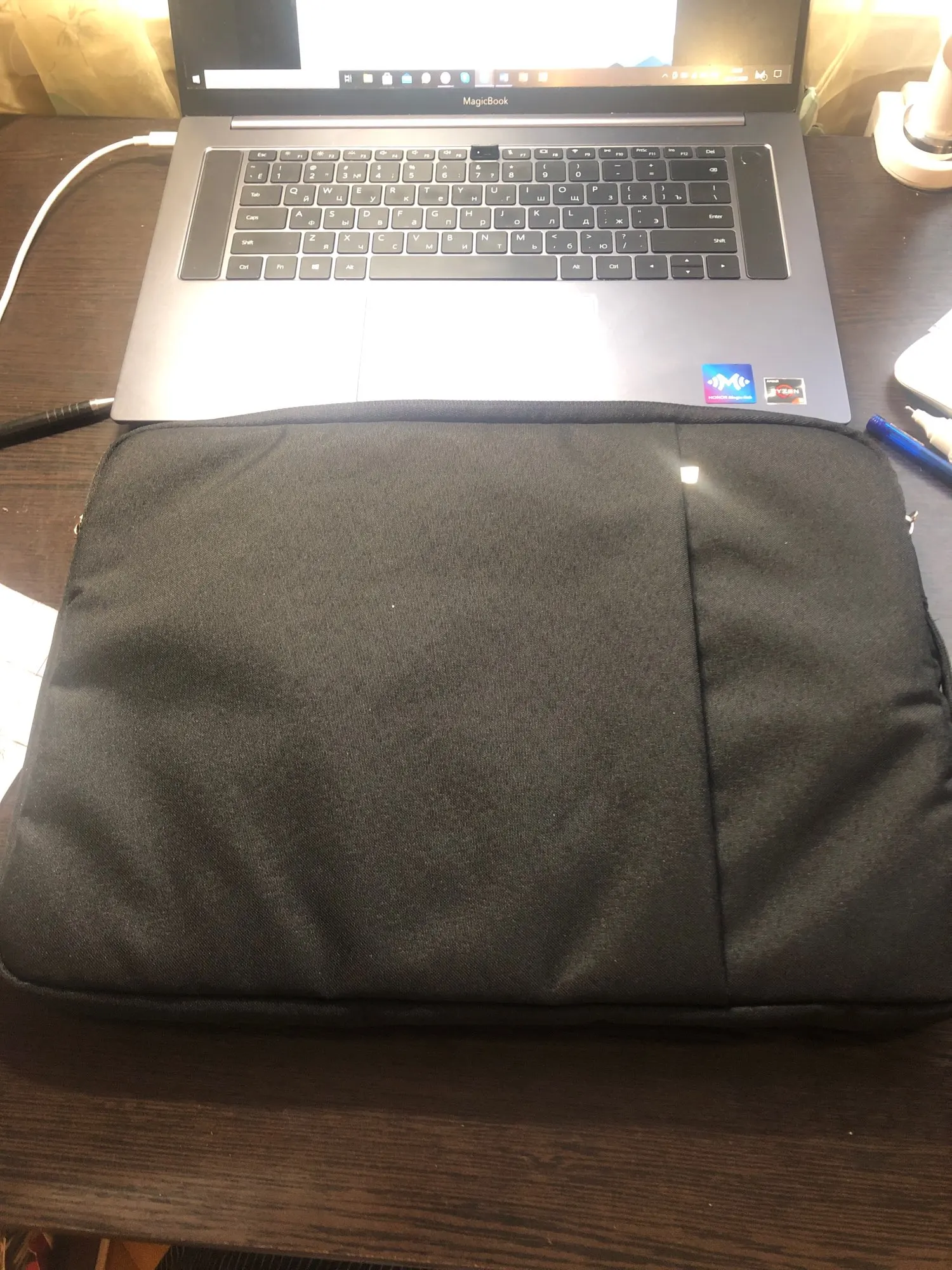 На honor magicbook pro 16,1 впритык, с юсб от мышки не зайдет, натягивается как чехол. закрывать нужно аккуратно, молния задевает угол, может поцарапать. Качество крутое, отдельный карман для всего остального. Цвет приятный, ручка тонкая, не внушает доверия. В целом очень приятный, на 16,1 тут несколько вариантов, я рада что выбрала этот