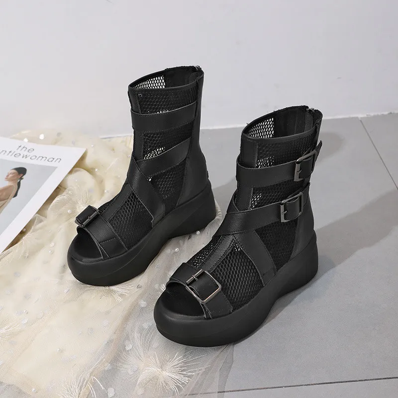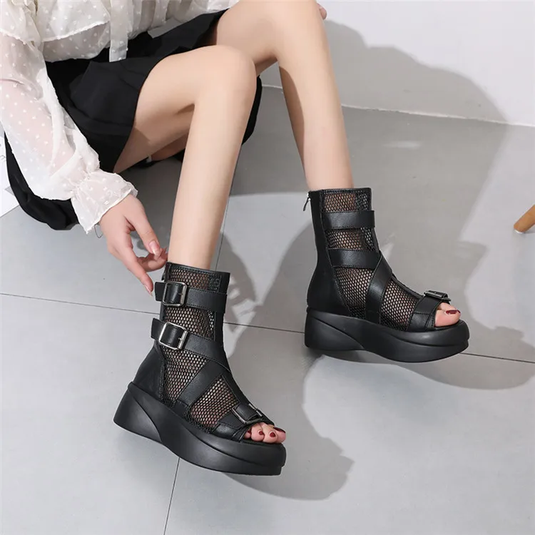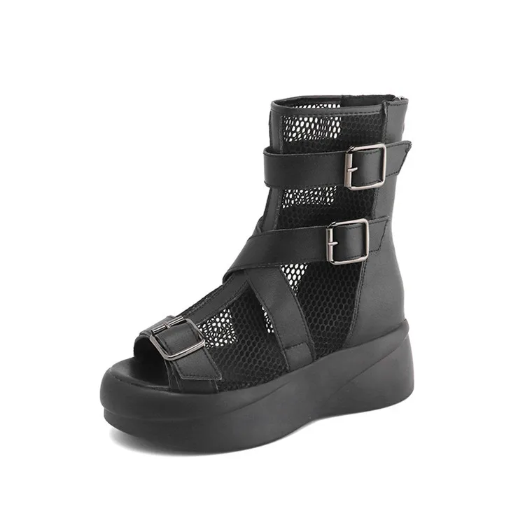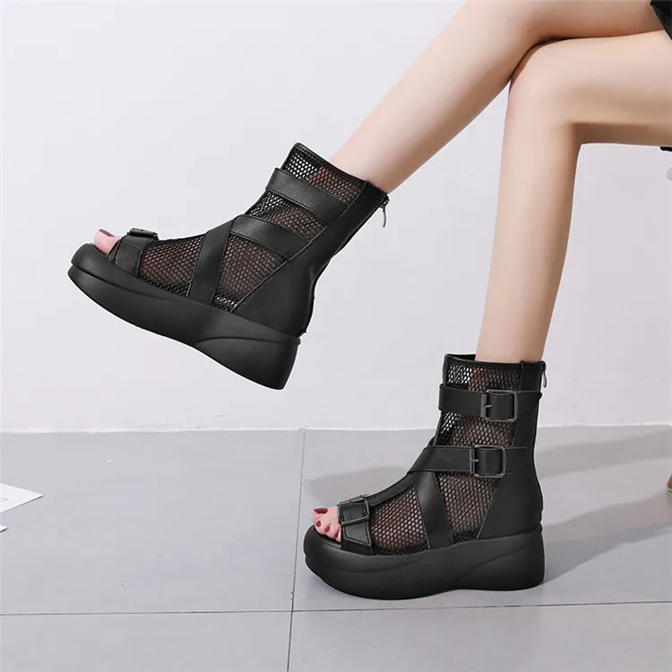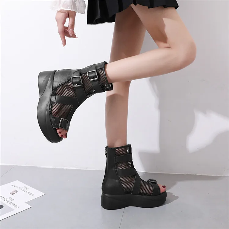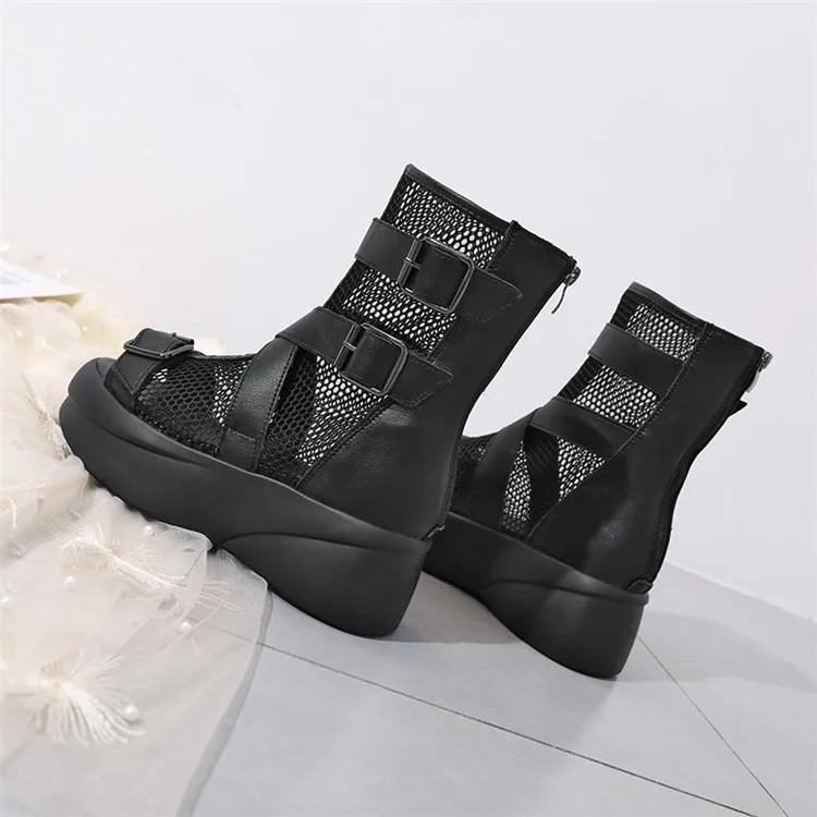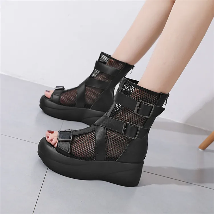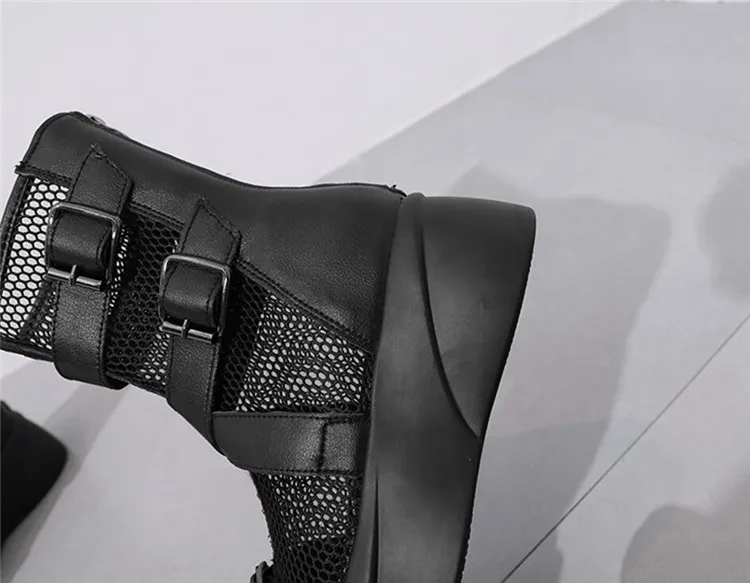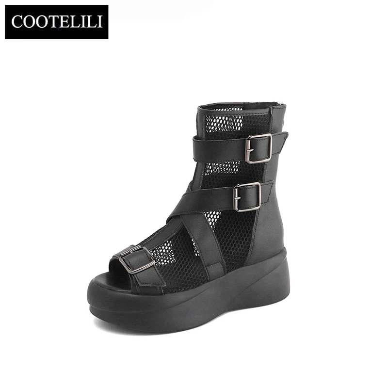 Женские босоножки COOTELILI, черные, дышащие, сетчатые, на каблуке 5 см, на платформе, с пряжкой, сандалии для женщин, на молнии