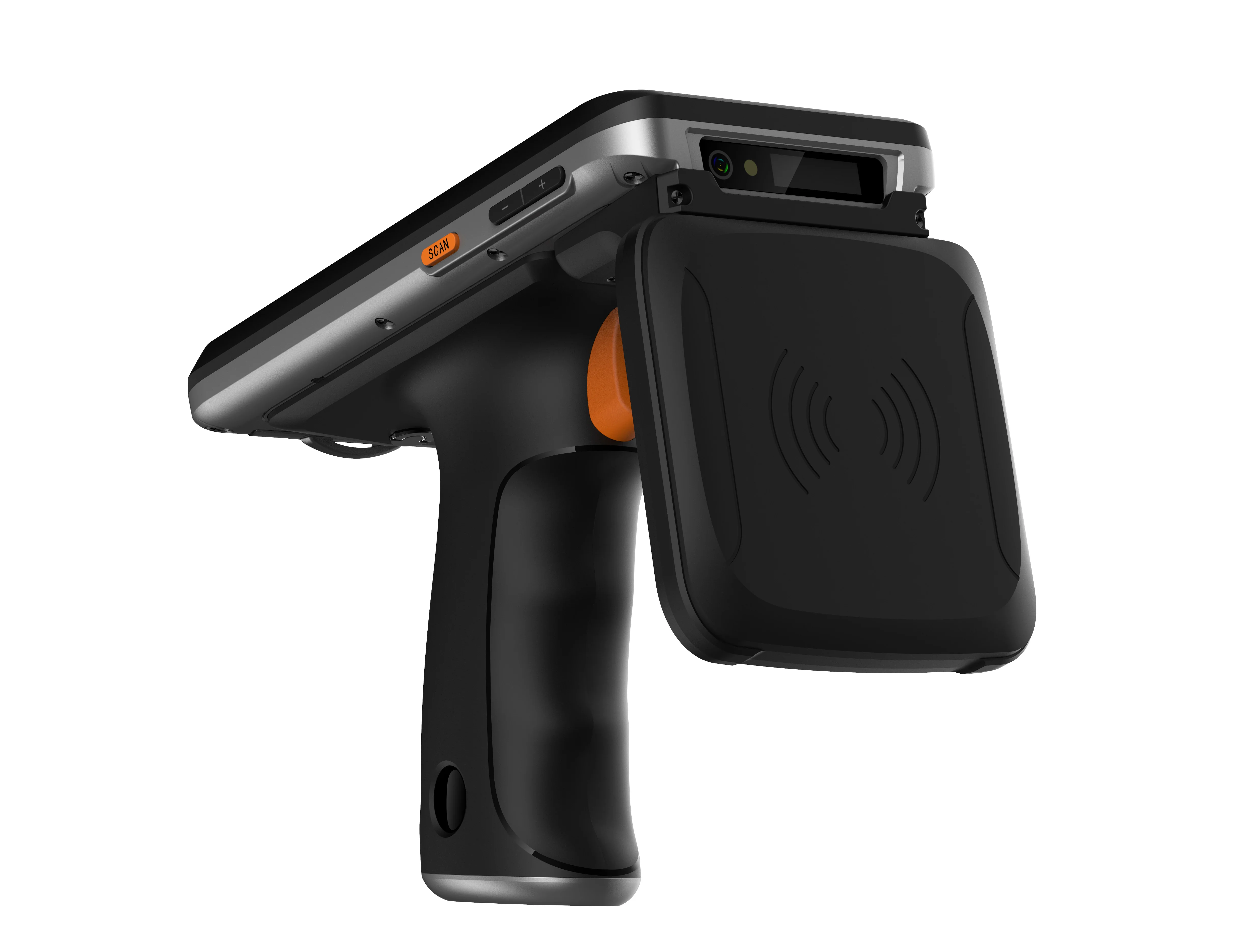 Большой модуль UHF ставится перед устройством для лучшего чтения в большом диапазоне. Расстояние считывания может достигать 15 метров в обычном режиме, а в полном пустом пространстве может достигать 30 метров.