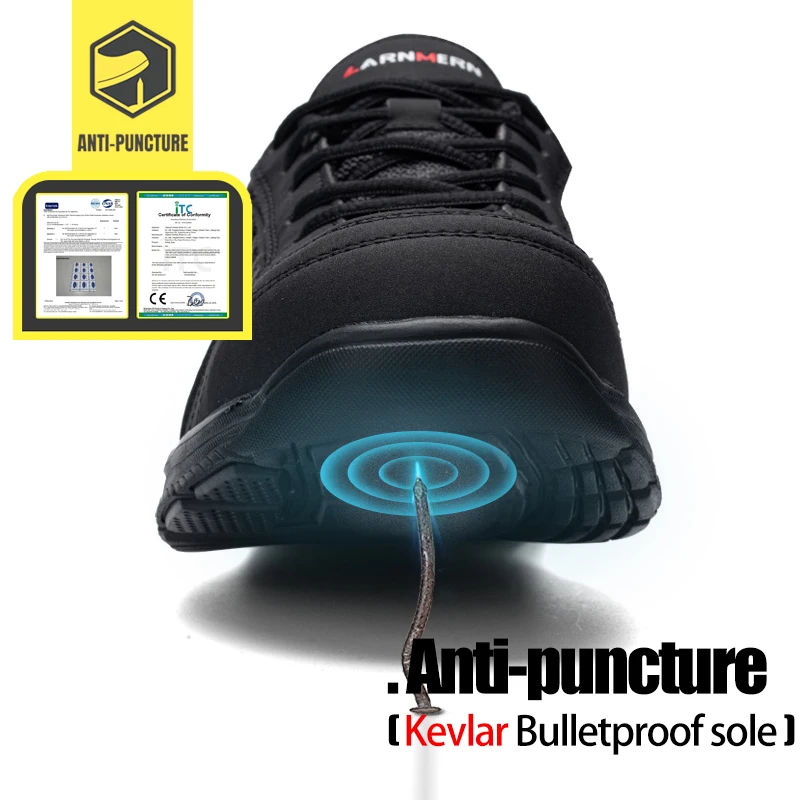 LARNMERMбезопасная обувь; Рабочая обувь со стальным носком; Водонепроницаемая легкая дышащая нескользящая обувь для строительства