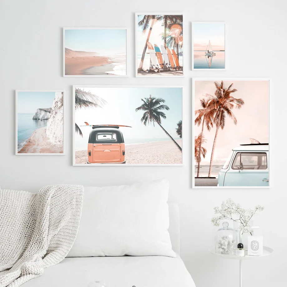 Доска для серфинга с морским пляжем, настенная Картина на холсте, скандинавские постеры и принты с пейзажем, украшение для гостиной