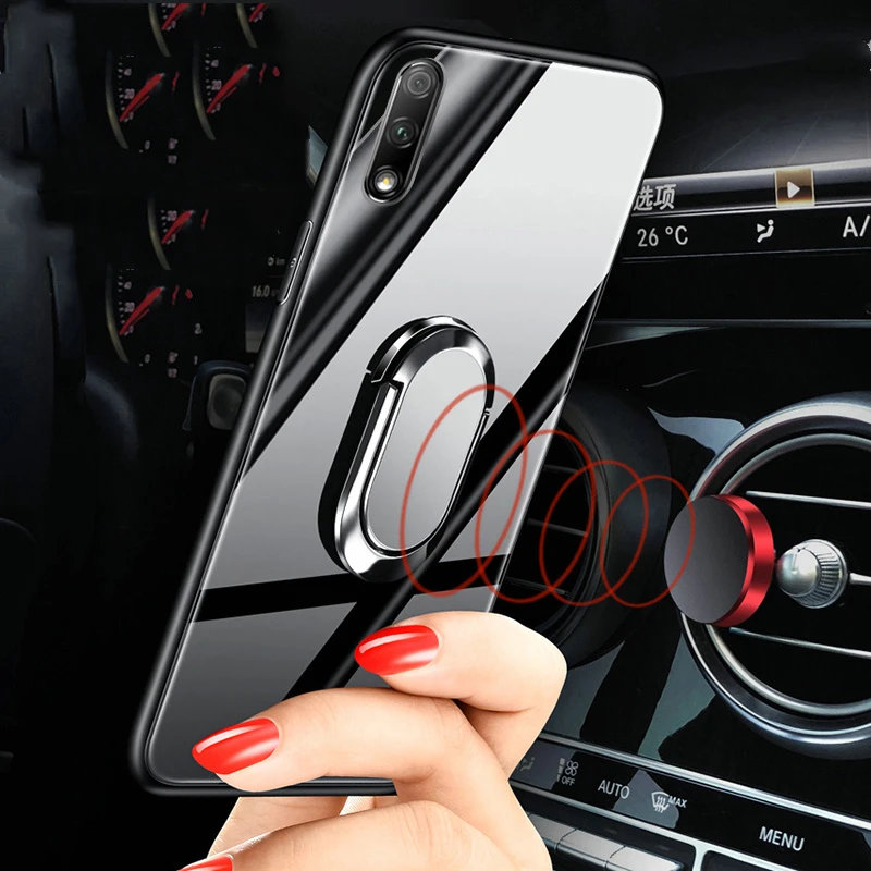 Чехол из закаленного стекла с кольцом-держателем для Huawei Y8P Y7P Y5P 2020