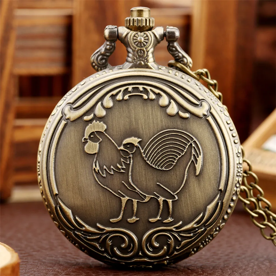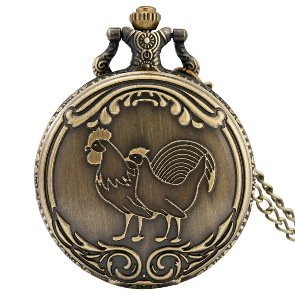 Петух Курица Дизайн бронзовое кварцевое ожерелье карманные часы ретро кулон часы подарки