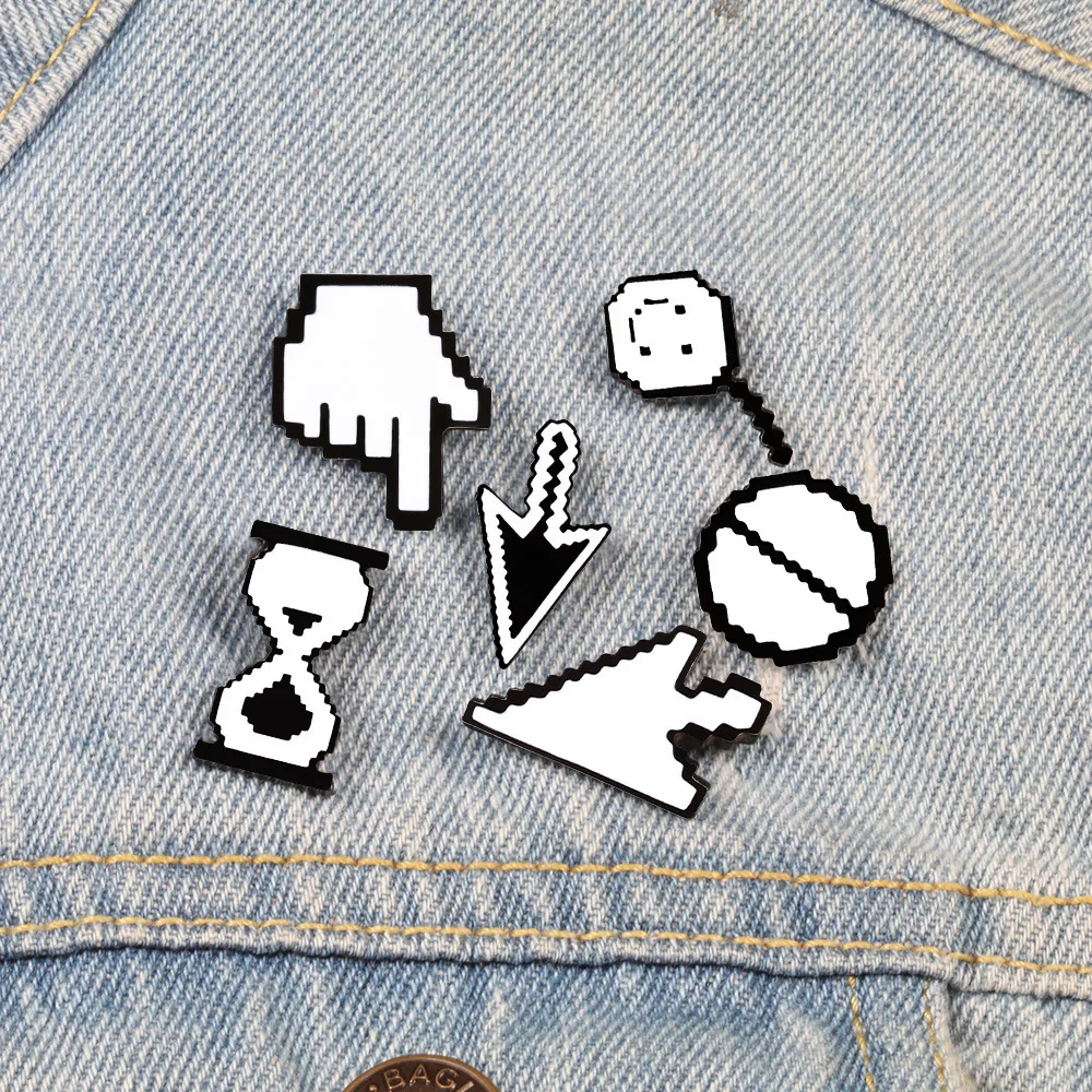 Мультяшные пиксели курсоры Photoshop песочные часы компьютерное окно значок мышь указатель стрелка руки креативный эмалевые броши, булавки значок для рюкзака