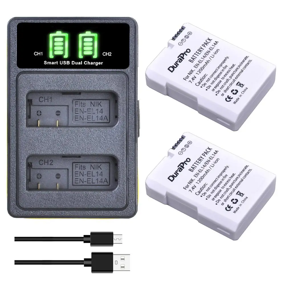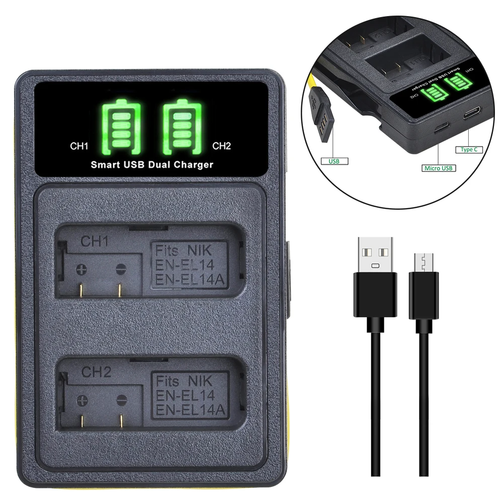 2 шт. x 1200 мАч, EN-EL14a EN-EL14 EL14 Батарея Зарядное устройство с Тип C для Nikon D5600,D5500,D5300,D5200,D5100,D3200,D3300,P7800,P7100