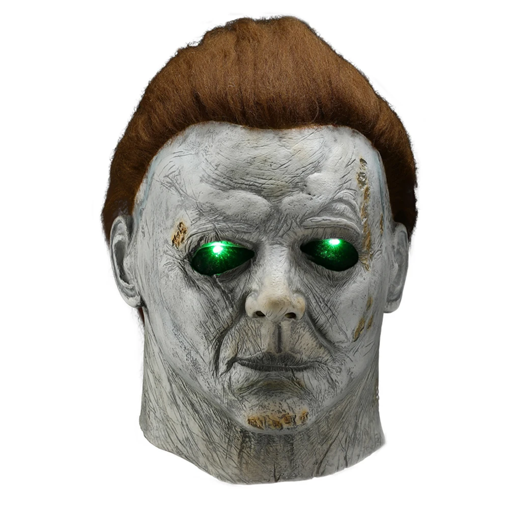 Страшная светодиодная маска для Хэллоуина, страшный убийца, на все лицо, латексный шлем, реквизит для костюма для Хэллоуина, новинка 2020
