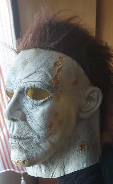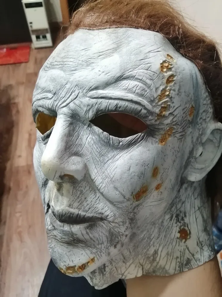 Очень долго искал на просторах Али годную и качественную маску Майерса. И тут я не прогадал. Доставили менее, чем за месяц в Якутию. Маска выполнена очень качественно. Волосы сделаны цельным париком и не выпадают. Резких запахов нет. Хотелось бы посоветовать производителю на затылке сделать липучку, чтобы подгонять маску по размеру шеи. При движении головы маска может немного сползти вниз. Но это можно исправить самому. Приобретал "состаренную" версию без подсветок. Планирую теперь приобрести "белую" маску.