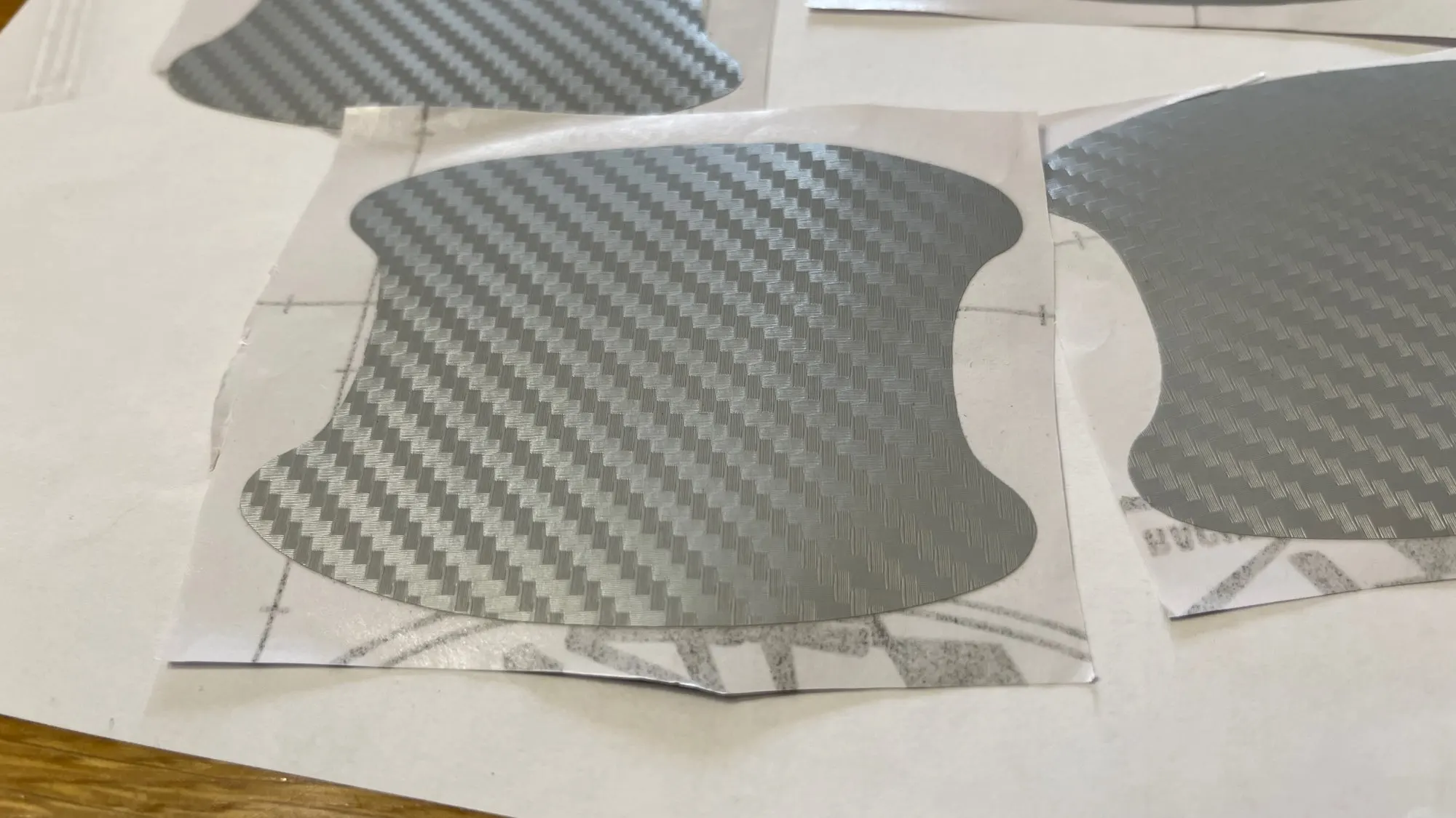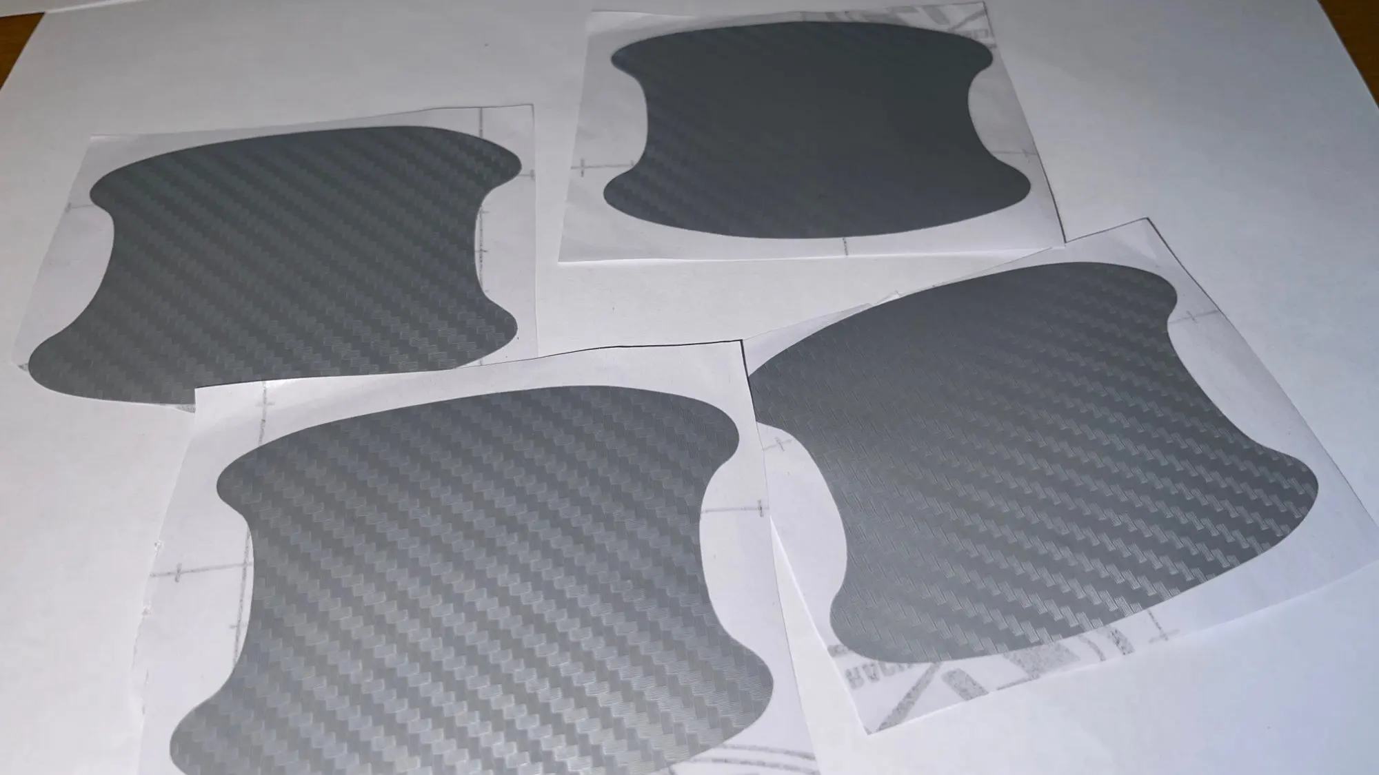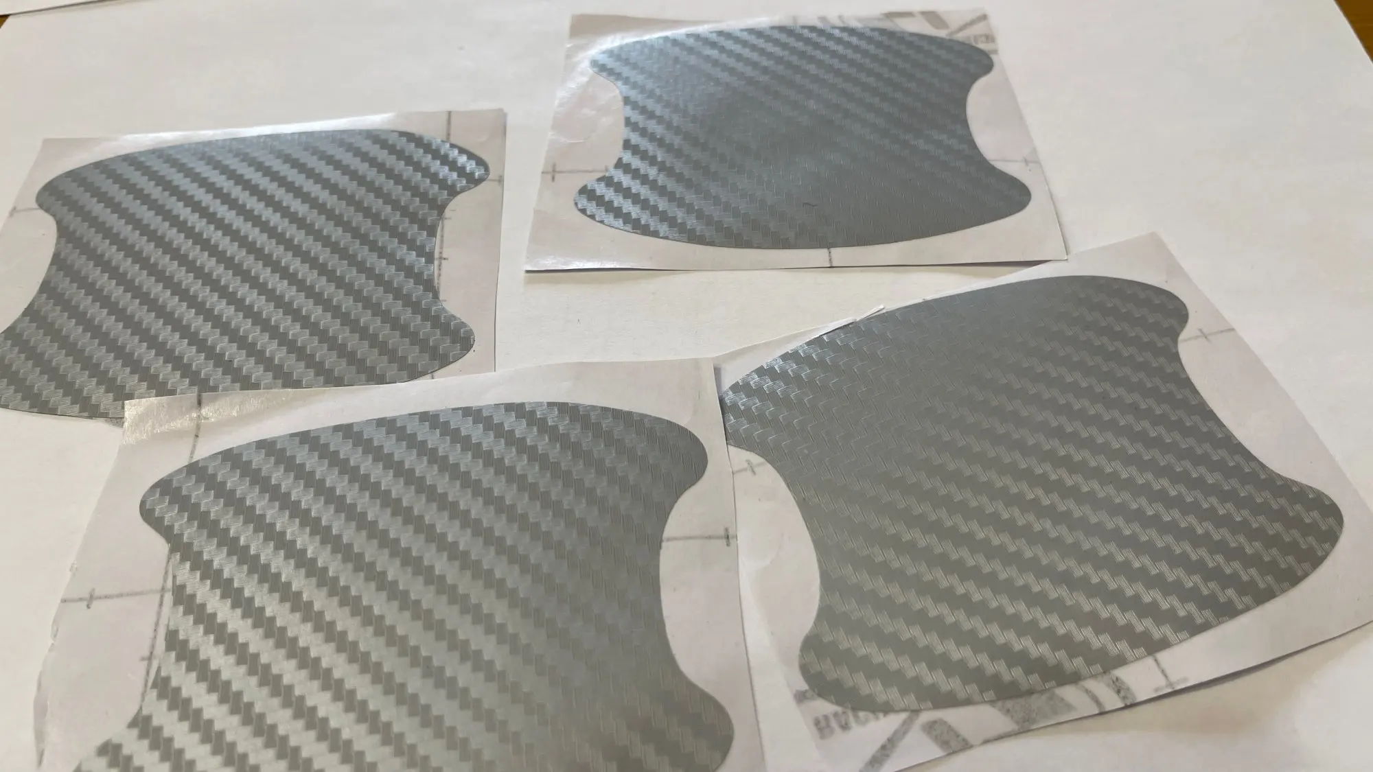 Хорошие пленки,первый раз заказывал прозрачные,клеил первый раз и соответственно закасячил.Эти приклеились отлично.Обезжириваем,прогреваем феном под ручками,отклеиваем пленку,заводим ее аккуратно под ручку,клеим верхнюю часть которую завели под ручку,и аккуратно разглаживаем вторую половину пленки.На самом деле всё просто.Фото не стал делать,так как на темной машине их и не видно практически.