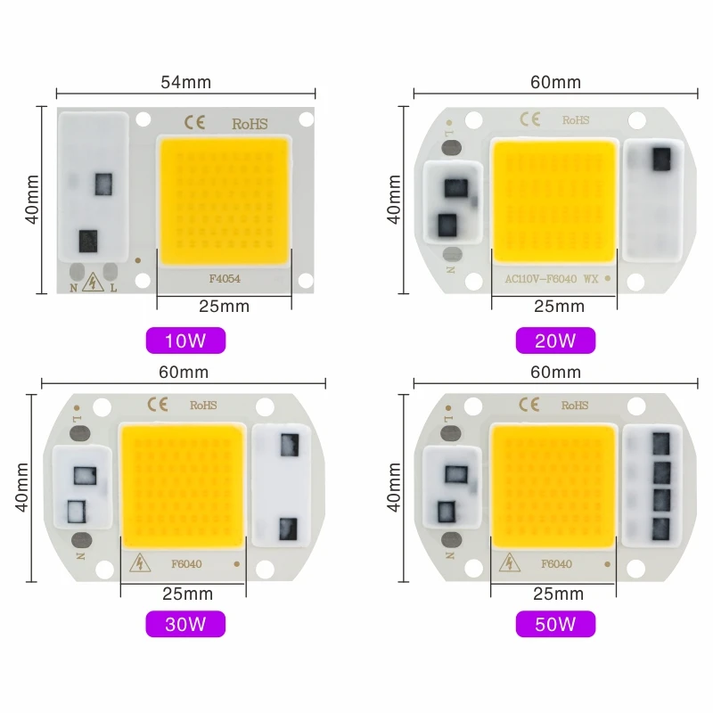 Чип светодиодный COB, светодиодный светильник холодного и теплого белого света, 110 В, 220 В, 10 Вт, 20 Вт, 30 Вт, 50 Вт, не требует драйвера