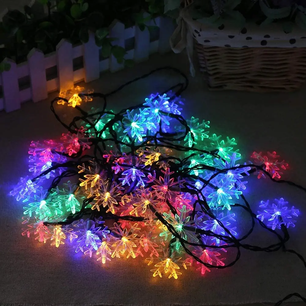 Солнечный Рождество Снежинка струнный светильник s 5 м 10 м светодиодный светильник Феи водонепроницаемый наружный Декор Светильник для рождественской елки ограждение для сада