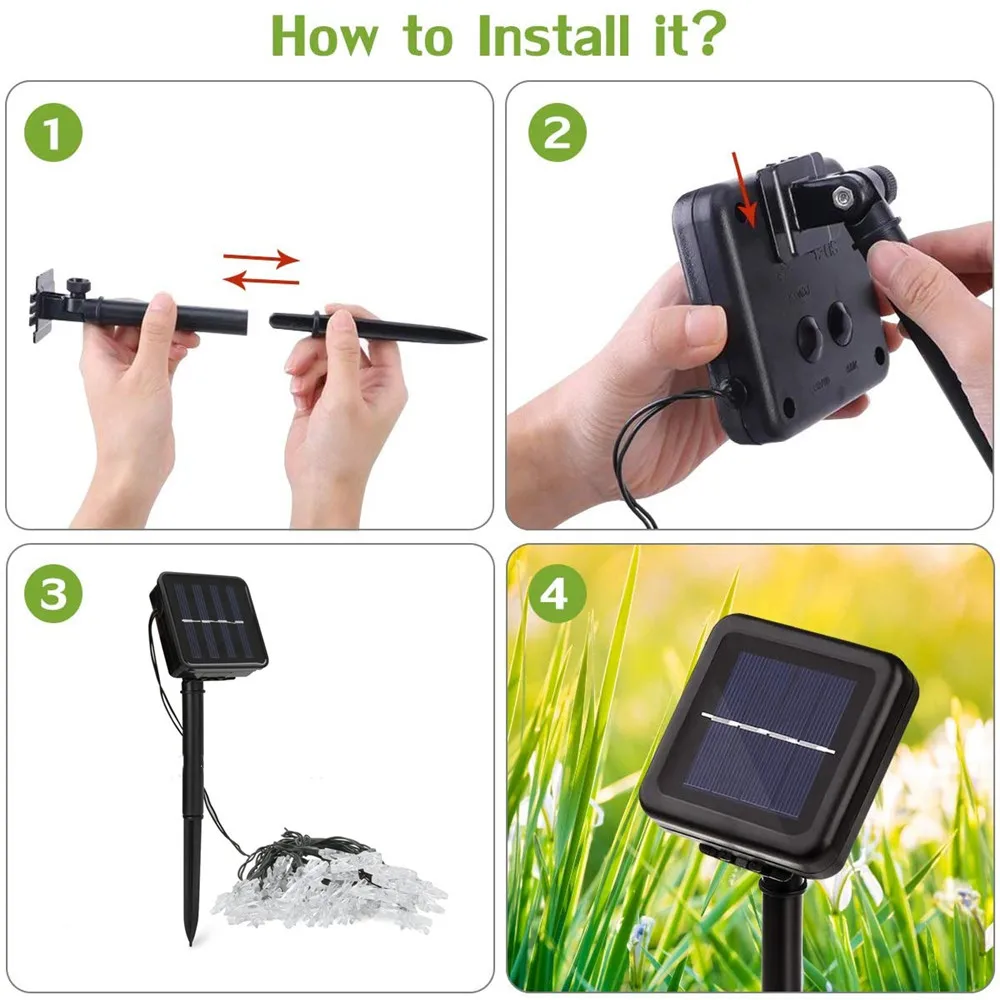 Гирлянда на солнечных батареях, идеально подходит для всех случаев наружной отделки, таких как: сад, патио, двор, тропинка, задний двор, окно, дверь, пол, потолок, трава, украшение рождественской елки.