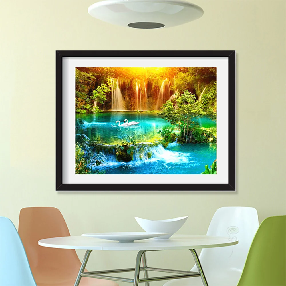 Huacan Полная площадь Алмазная вышивка природа алмазная мозаика 5д водопад древо картины из страз декор для дома