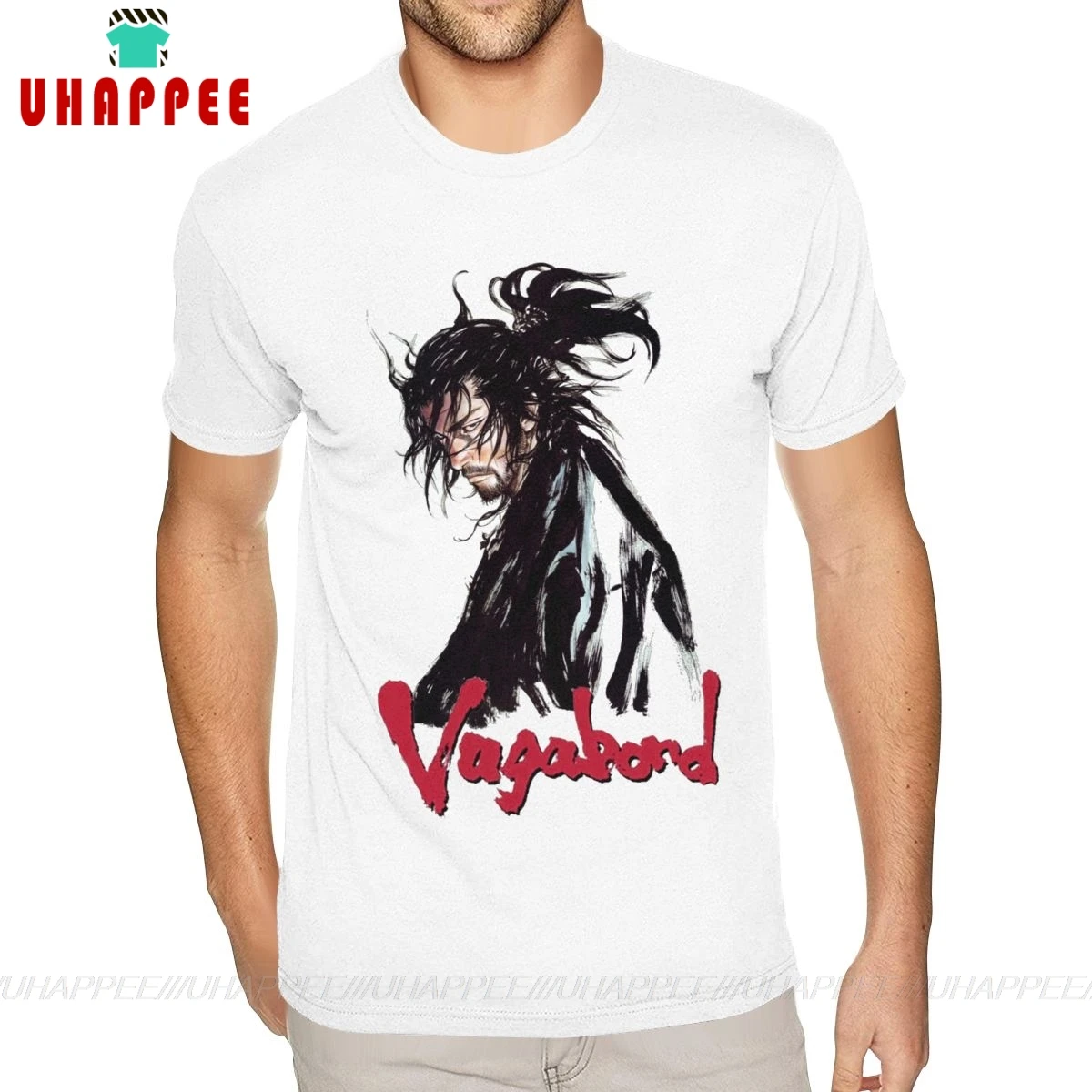Футболка с коротким рукавом и круглым вырезом, из органического хлопка, с самураем, воином, вагабоном, топ, футболки для подростков