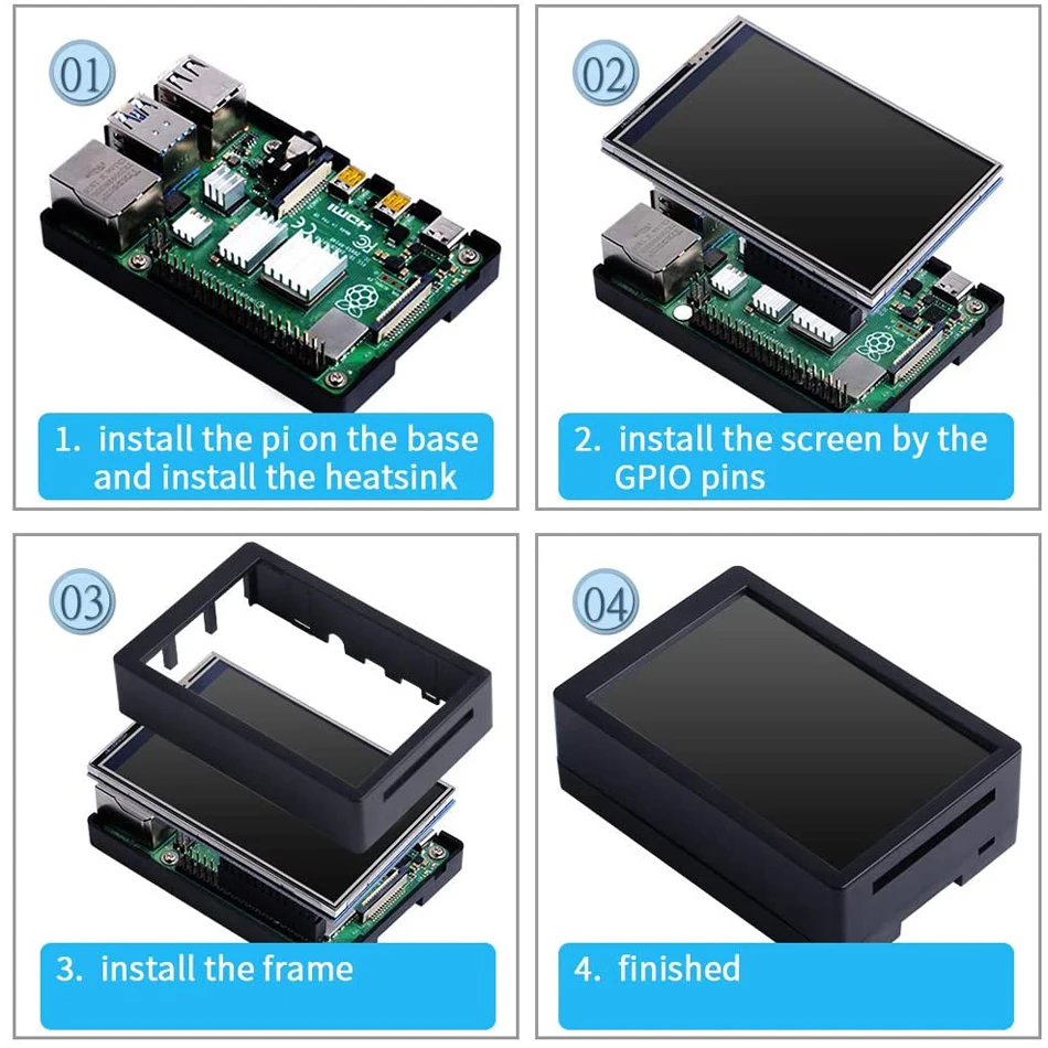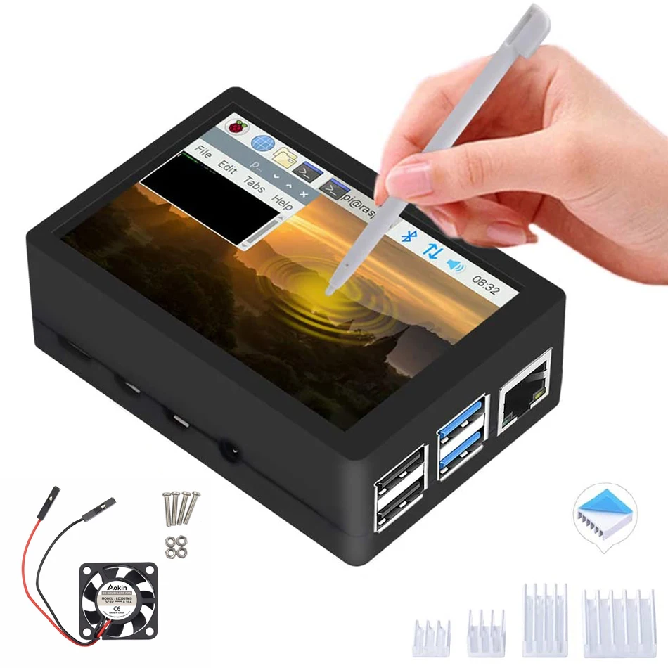 Whotel комплект: 1 кисть для маскирующих средств из АБС-пластика чехол с вентилятором для RPi 4B ,1x3,5 дюймов резистивным сенсором Экран, 1 x сопротивление ручка, 1 x Алюминий теплоотводы в упаковке (4 шт.)