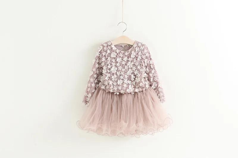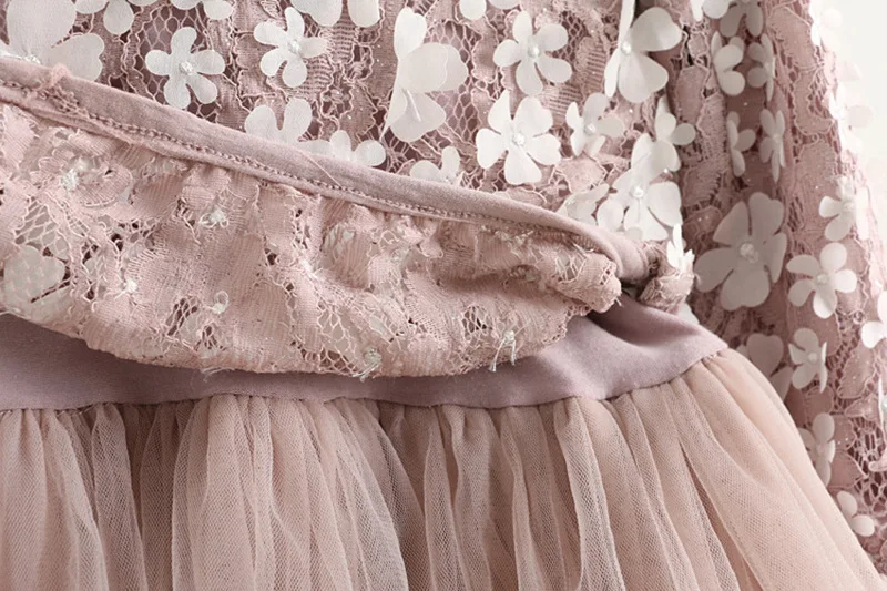 Зимнее платье с длинными рукавами для девочек Кружевное платье-пачка принцессы с цветочным узором для дня рождения детская повседневная одежда детская повседневная домашняя одежда