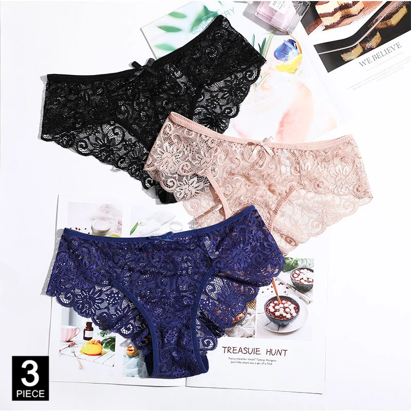 Женские трусики, прозрачные трусы, 3 шт., сексуальное кружевное дышащее нижнее белье, Дамский Комплект трусиков, женские трусы для девочек, Прямая поставка