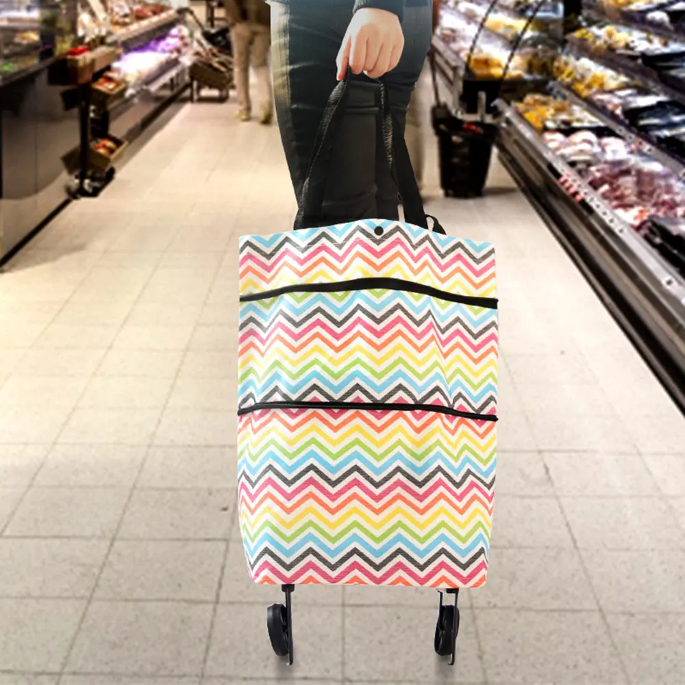 Сумка-тележка для покупок, портативная складная сумка-тоут из ткани Оксфорд, многоразовые сумки для продуктов, органайзер для покупок на колесах