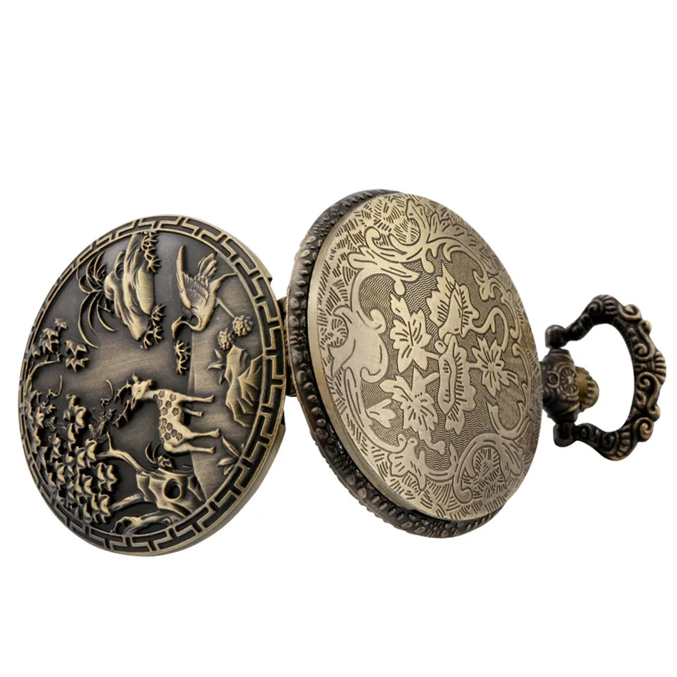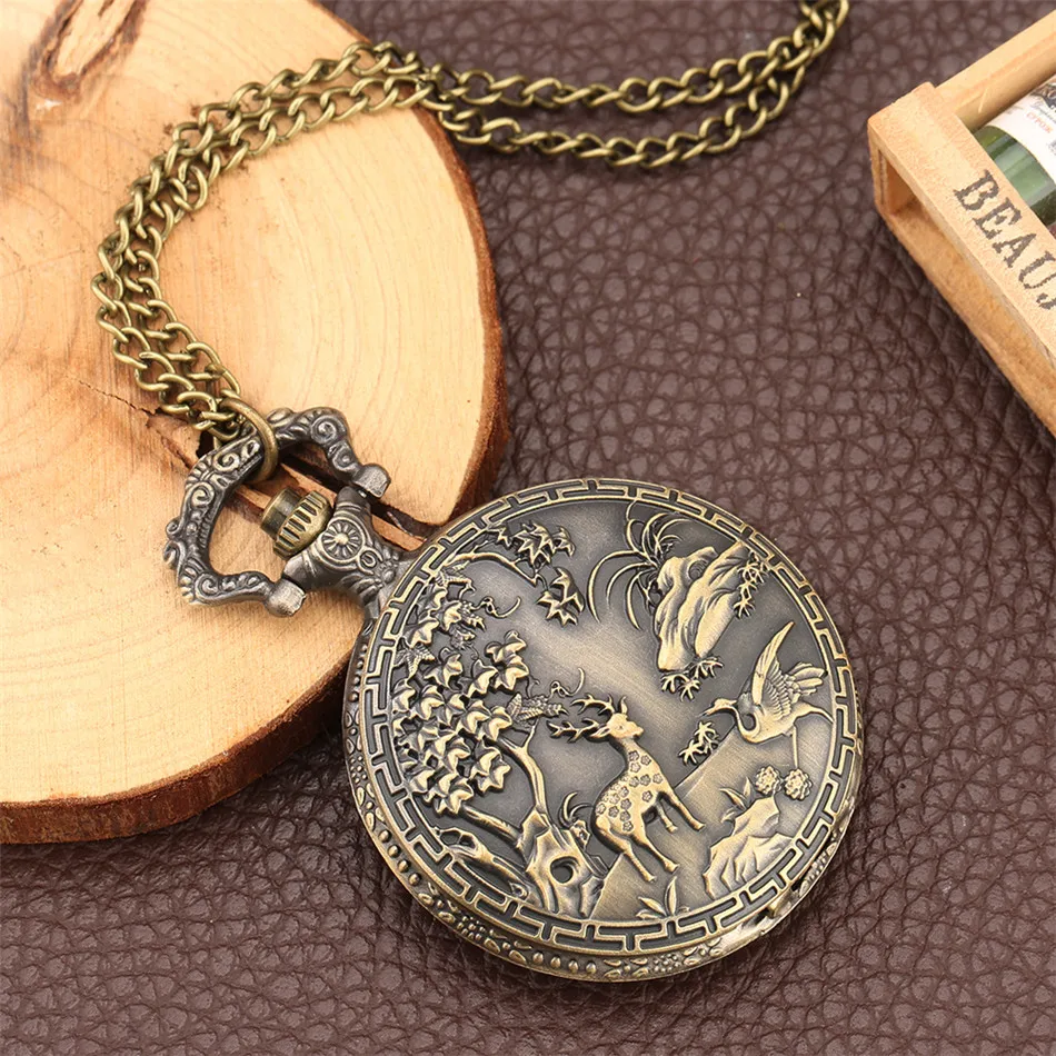 Изысканные кварцевые карманные часы с бронзовым оленем, винтажные часы с ожерельем, карманные часы на цепочке, подарки