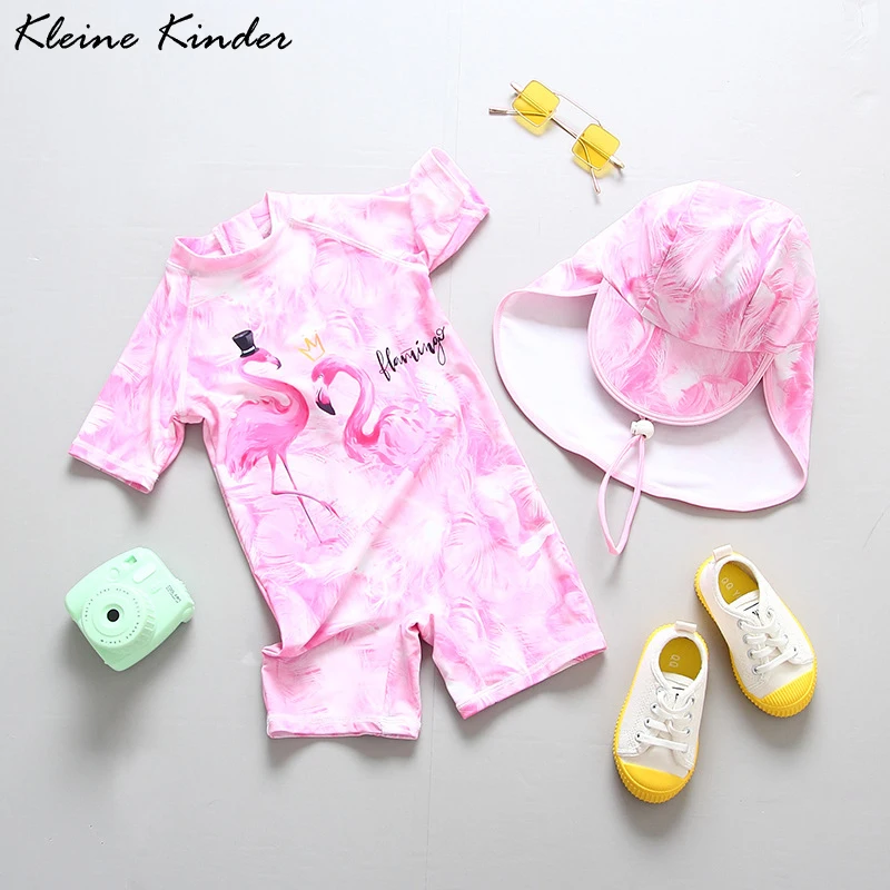 Купальный костюм для девочек с изображением фламинго, розовый, с защитой от ультрафиолета, цельный комбинезон для девочек, купальник для бассейна, пляжный летний детский купальный костюм