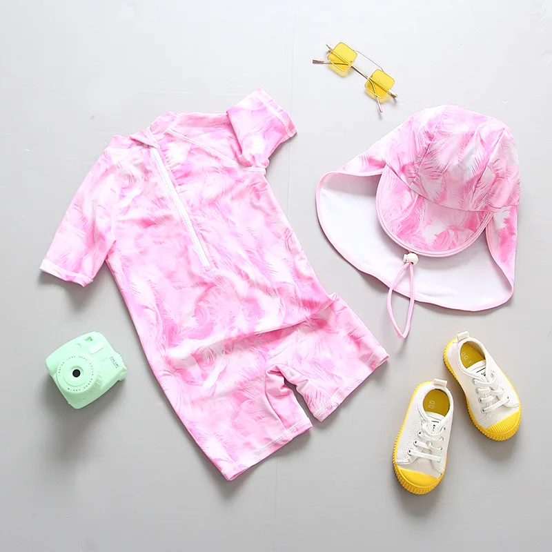 Купальник для девочек, розовый слитный комбинезон с УФ-защитой и фламинго, купальник для девочек, пляжный летний детский купальный костюм для бассейна