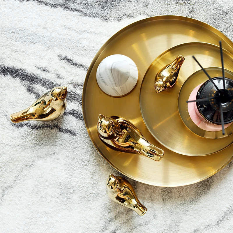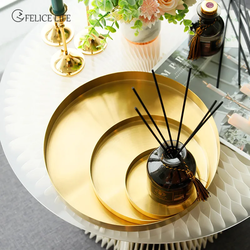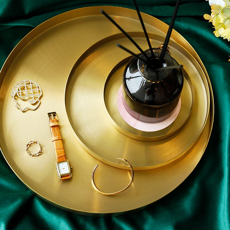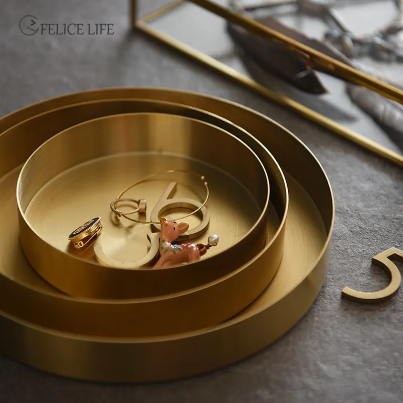 Металлический поднос для хранения ювелирных украшений, скандинавский Медный Круглый Настольный органайзер для хранения золота, мелких предметов, домашний декор