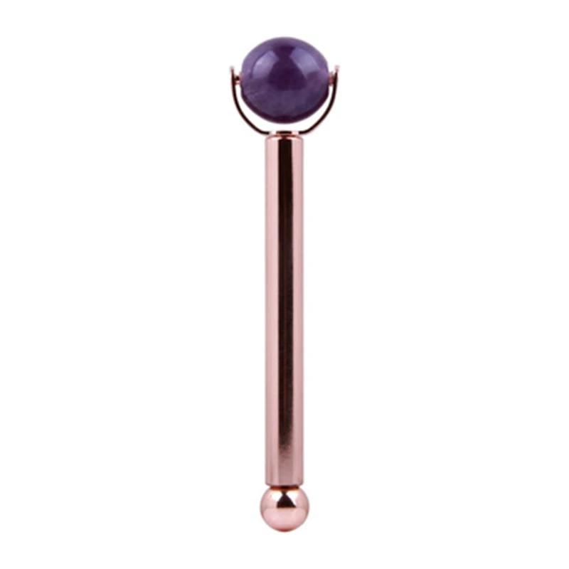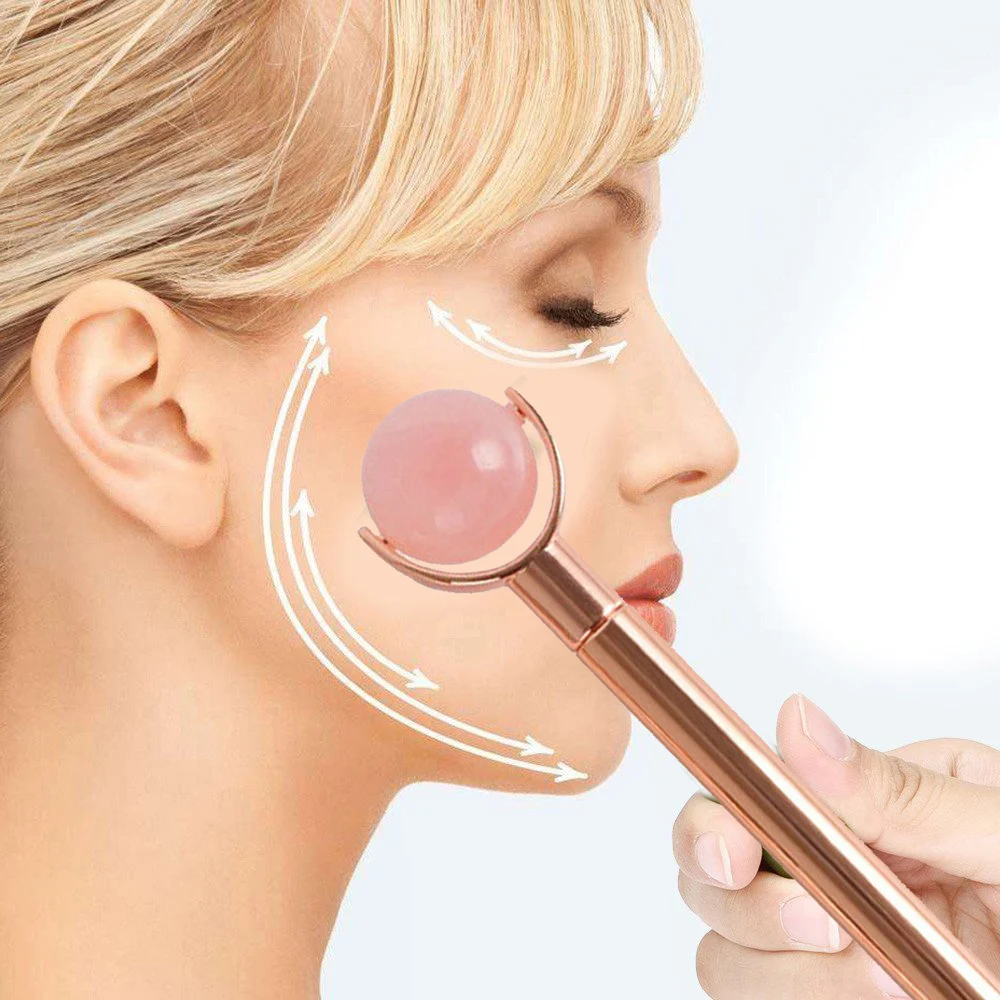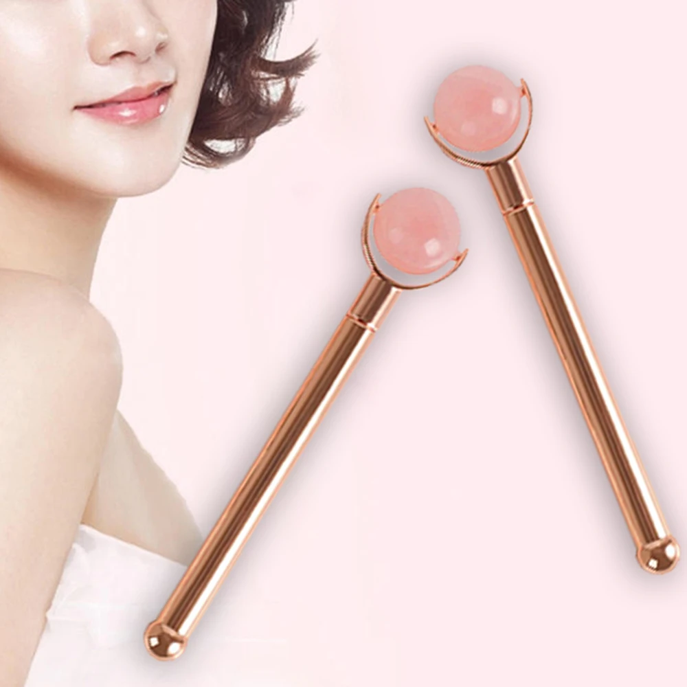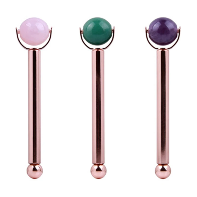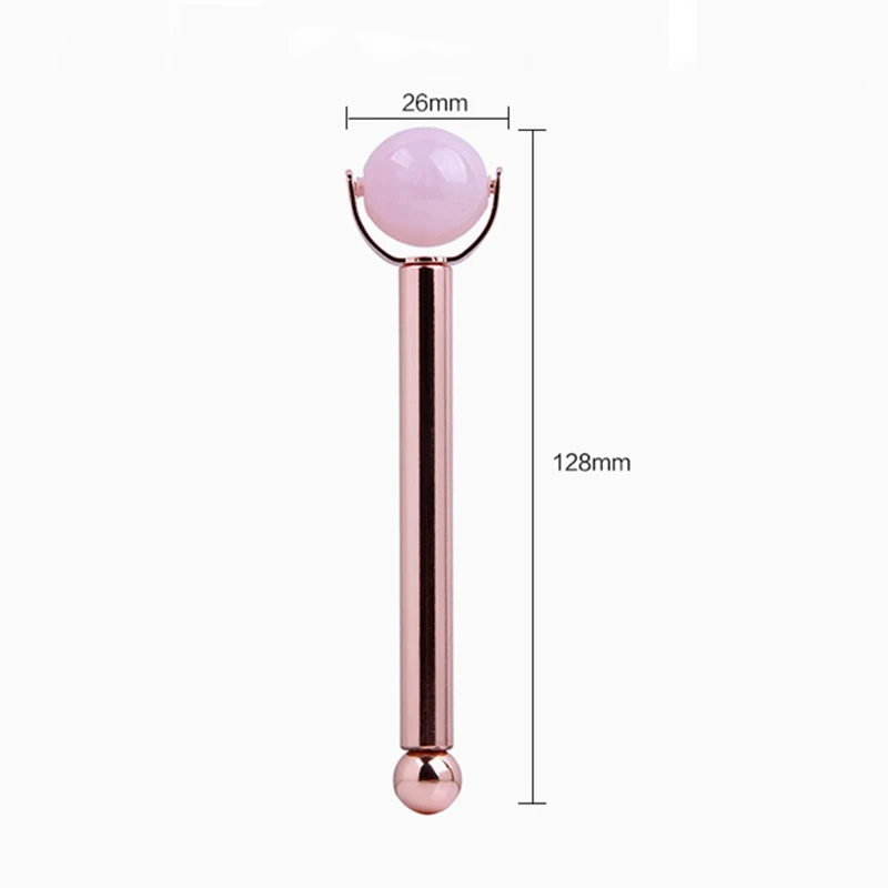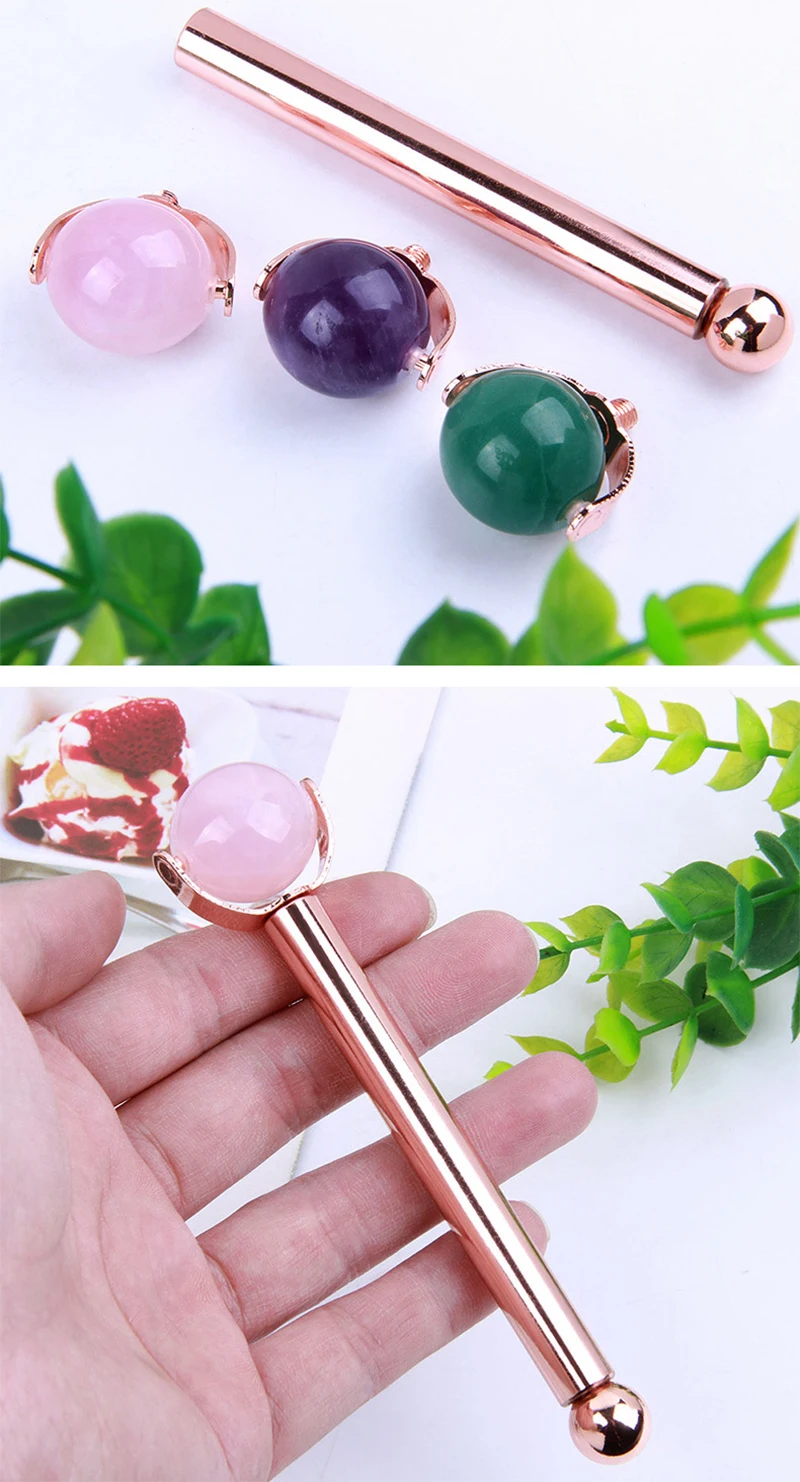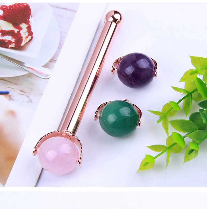 Натуральный круглый розовый кварц мяч нефритовый ролик Кристальный камень нефритовый массажер для лица горячая Распродажа для похудения лицо против морщин металлический стержень ролик