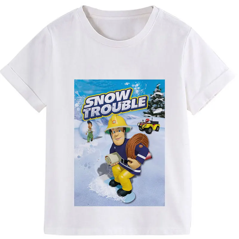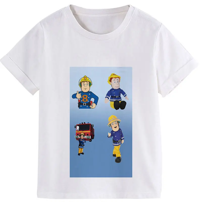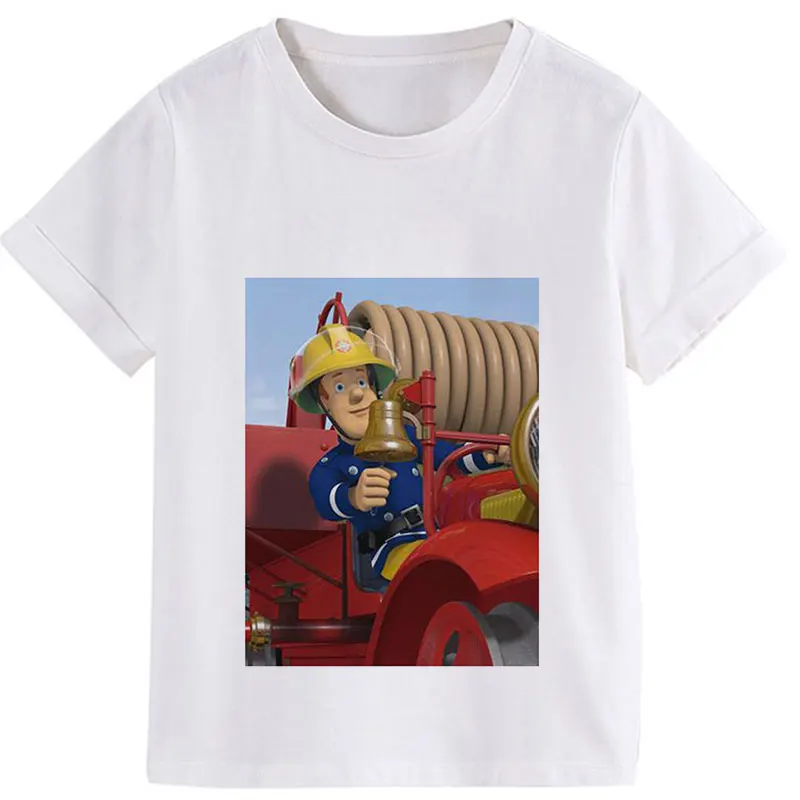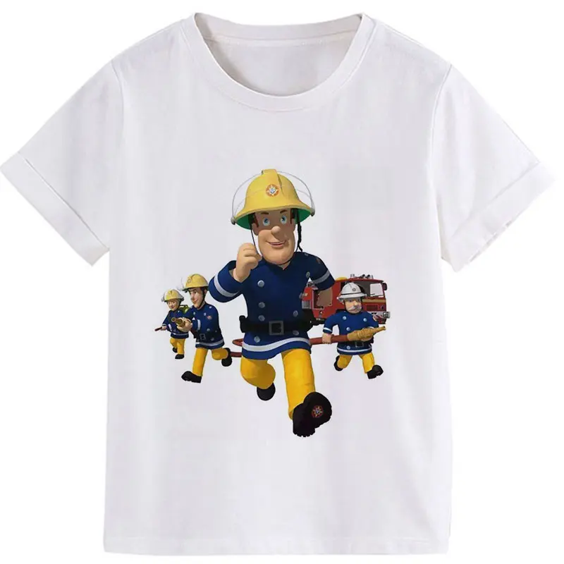 Мультяшная летняя одежда 2020, одежда для мальчиков с принтом, футболки с рисунком Sam, пожарный, детская одежда с анимацией для девочек от 8 до 1 .. Круглый вырез