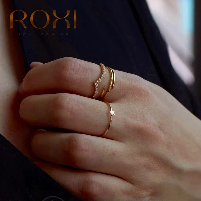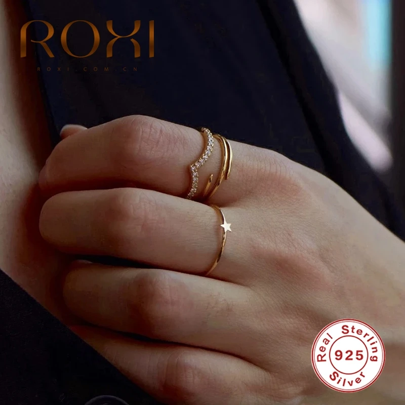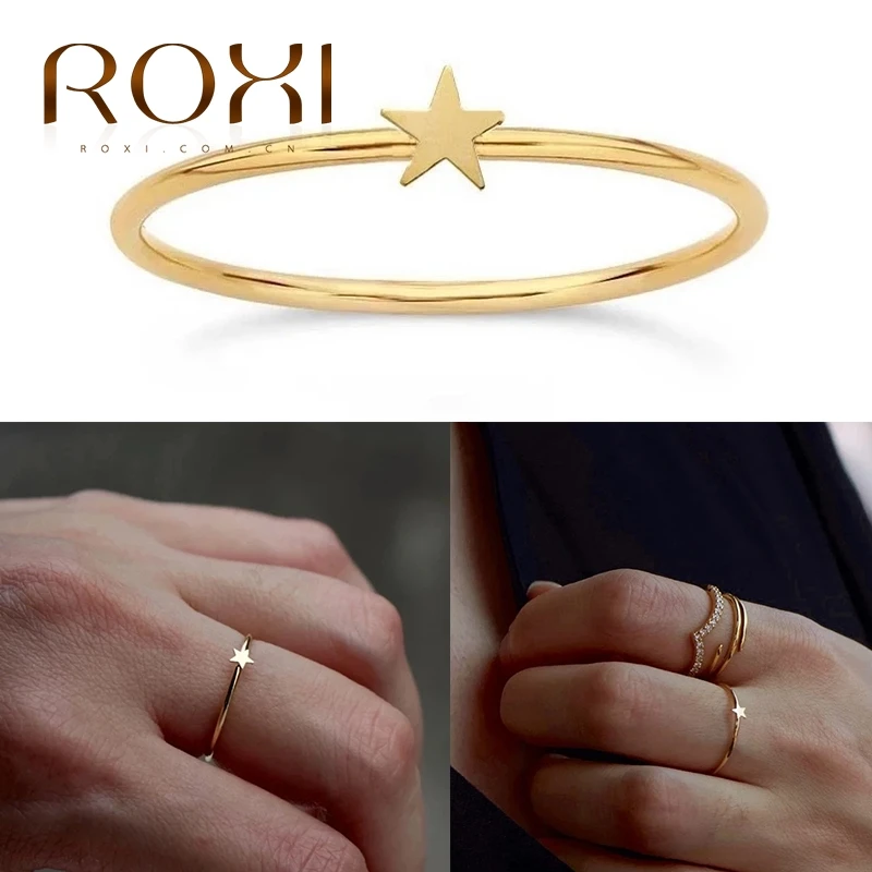Обручальные кольца ROXI с милой звездой минимализм для женщин и девочек Pierscionki серебряное Ювелирное кольцо 925 пробы очаровательные Кольца Bijoux Femme Bague