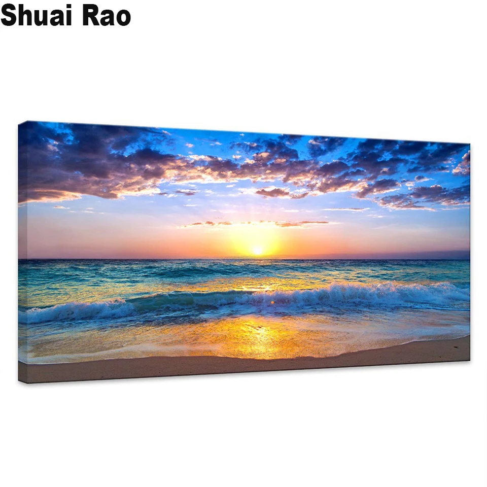 Большой размер Мозаика картина Стразы Вышивка синий океан волны солнце море вид 5D Сделай Сам алмазная живопись полное сверление квадратные круглые