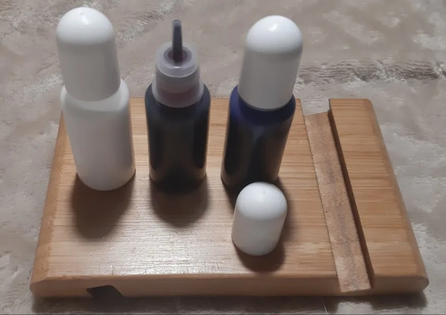 Бутылочки не дешманские, с пипеткой, хорошо закрываются. Краска пахнет лаком для ногтей, смешивается со смолой хорошо