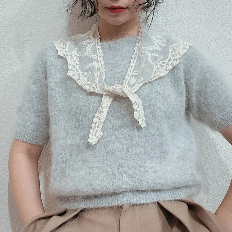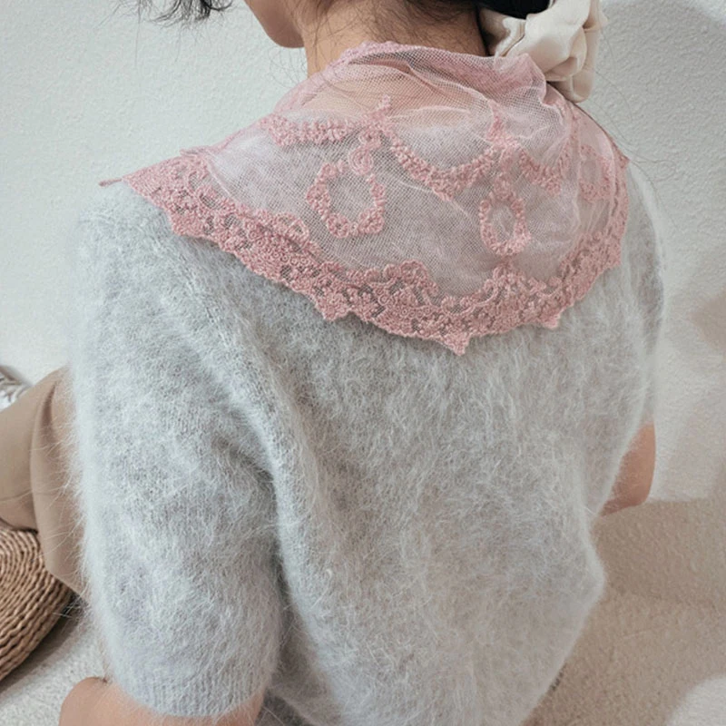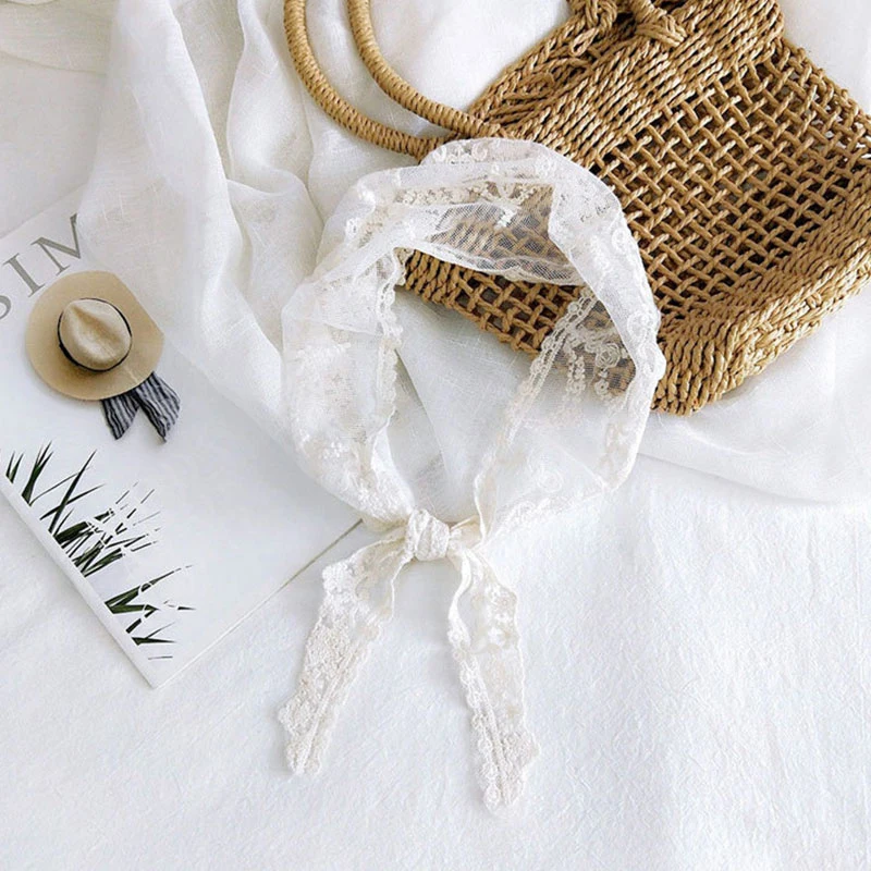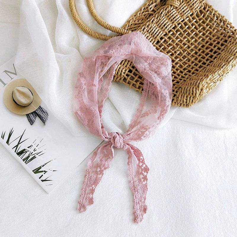 Маленькая шарф на шею Вязаная Шаль, женский шарф, треугольный кружевной шарф, однотонный кружевной прозрачный цветочный шарф для волос шарф на голову
