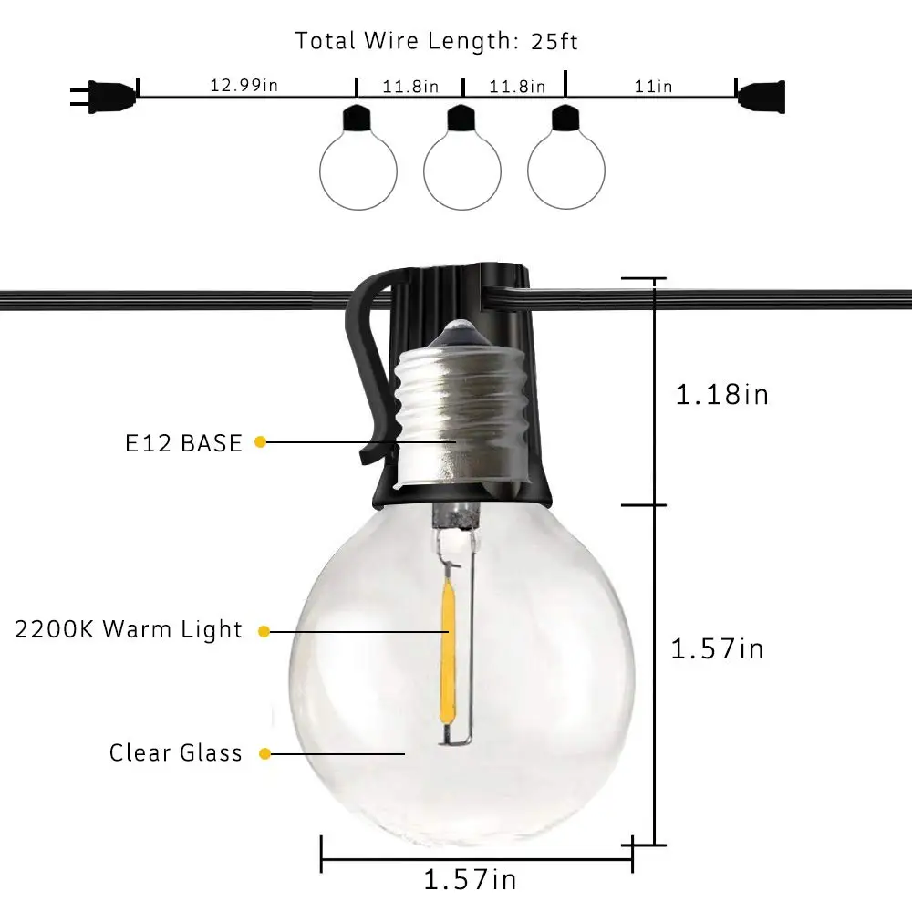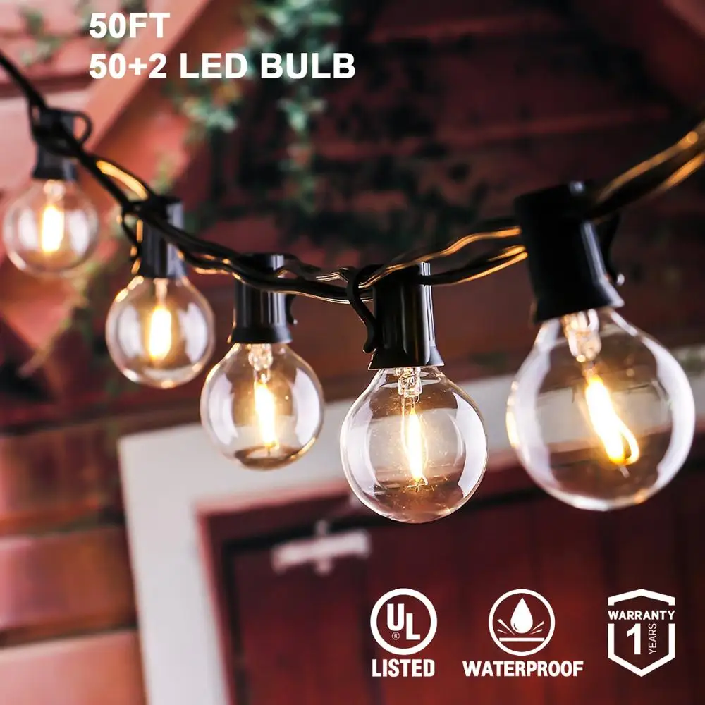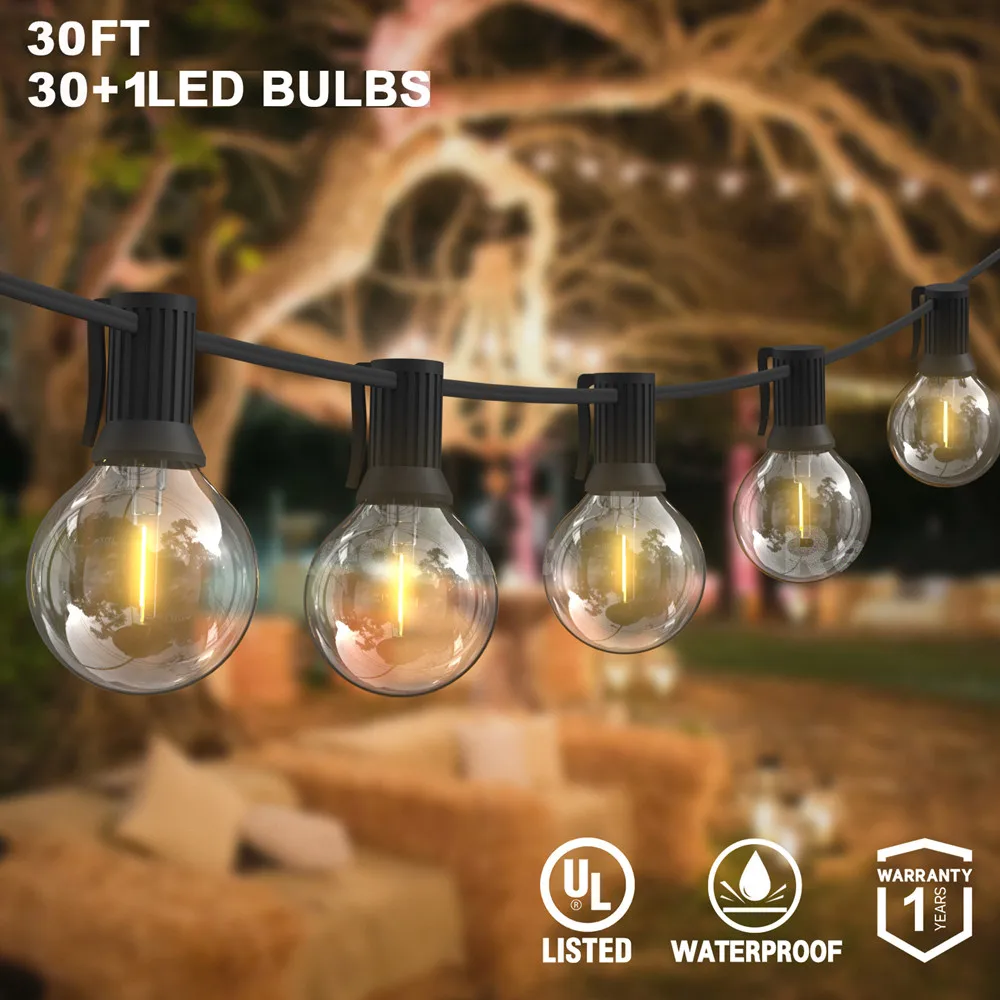 СВЕТОДИОДНАЯ Гирлянда G40, 30 футов, 31 шт., винтажная Светодиодная лампа 1 Вт, 2700K, IP45, водонепроницаемая уличная Гирлянда для внутреннего двора светильник внутреннего дворика