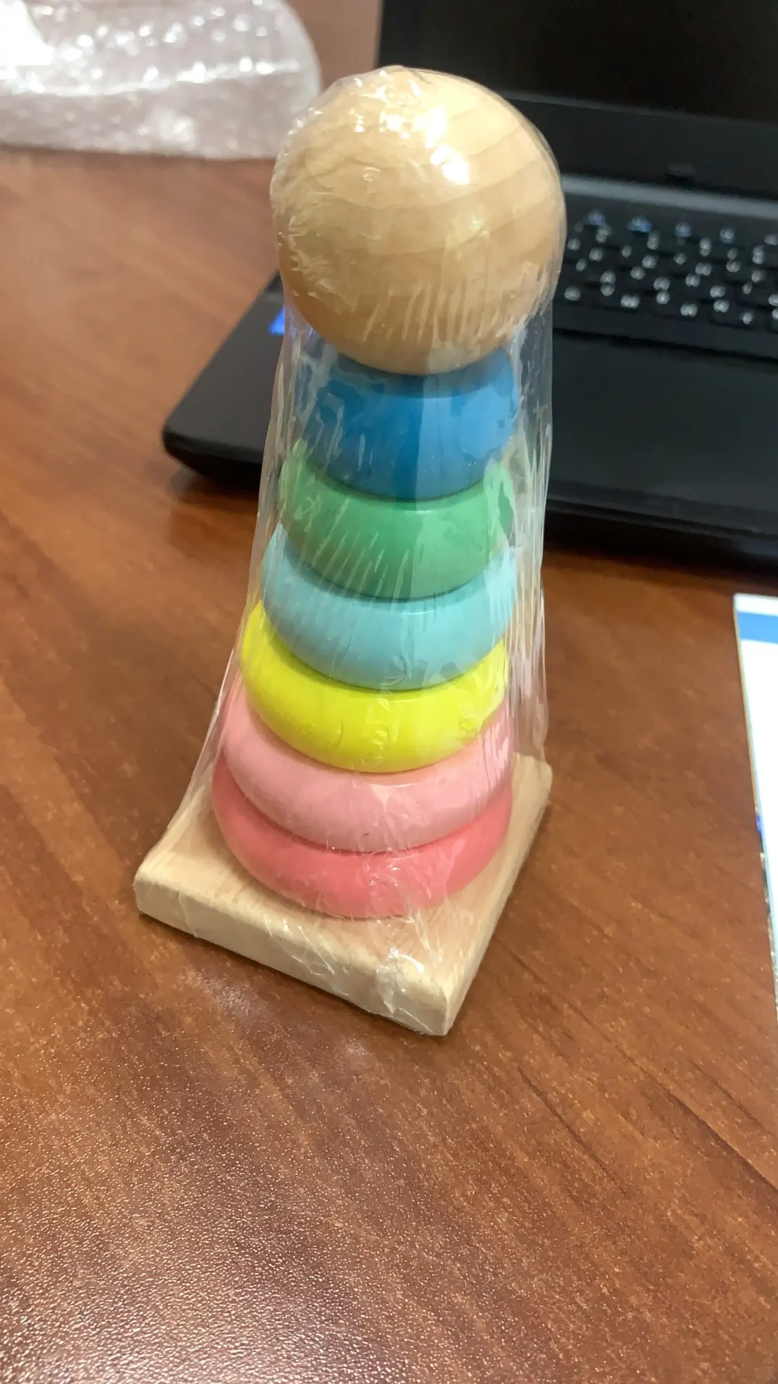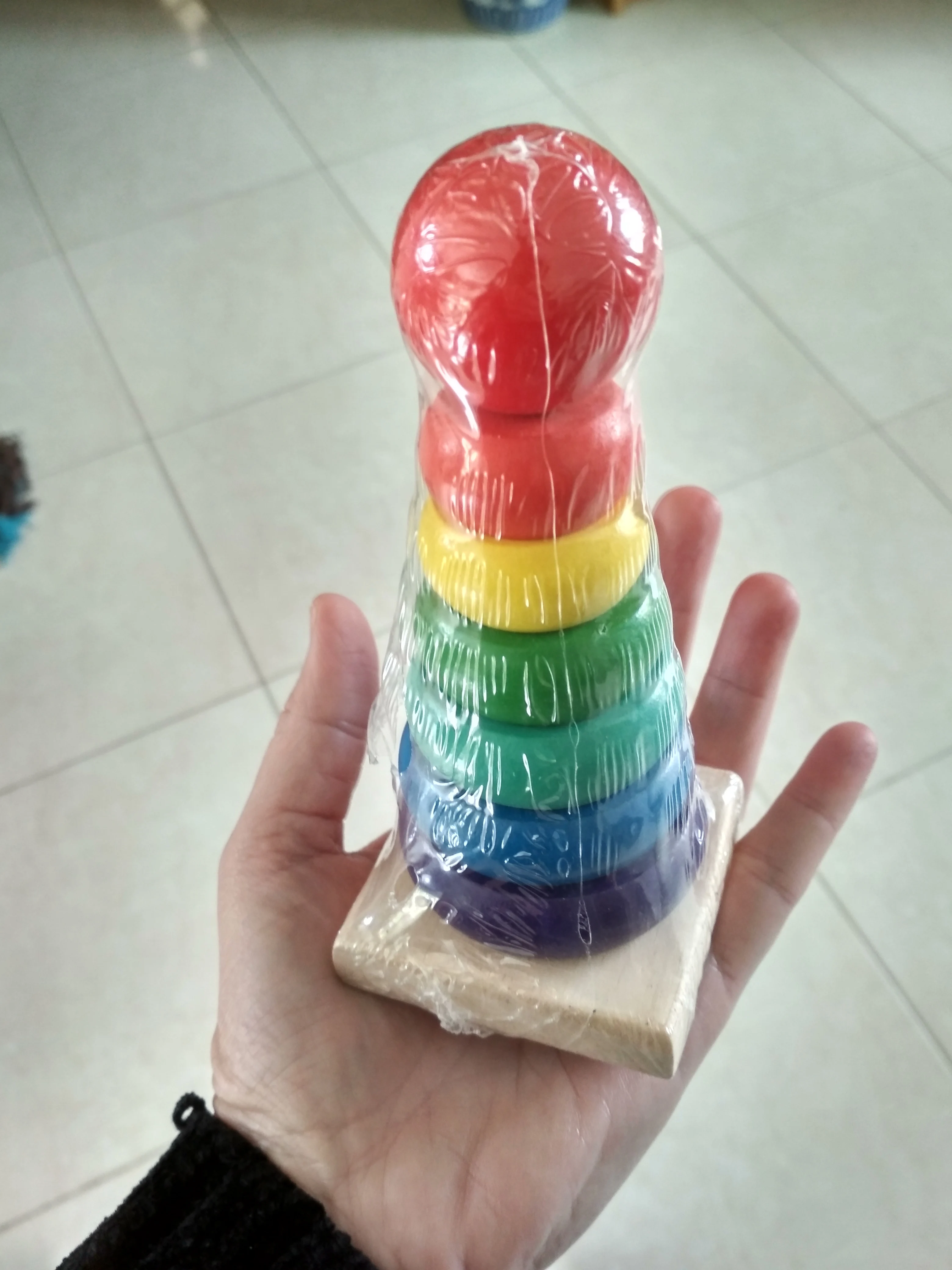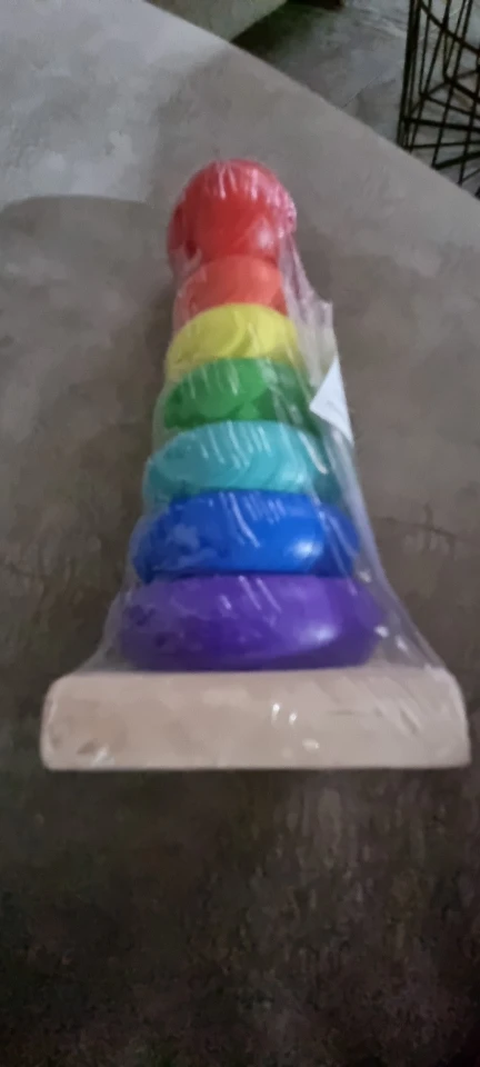 Une honte ce jouet est vendu pour des tout petits mais je vois mal comment lui apprendre à jouer avec des anneaux si petits. comment peut-il les enfiler, les placer? Je sais très bien que les photos sont trompeuses mais là c'est le summum. Là pyramide est juste un peu plus grande qu'un briquet. Voir la photo. Je l'ai acheté pour faire un petit cadeau mais j'aurai honte de l'offrir.