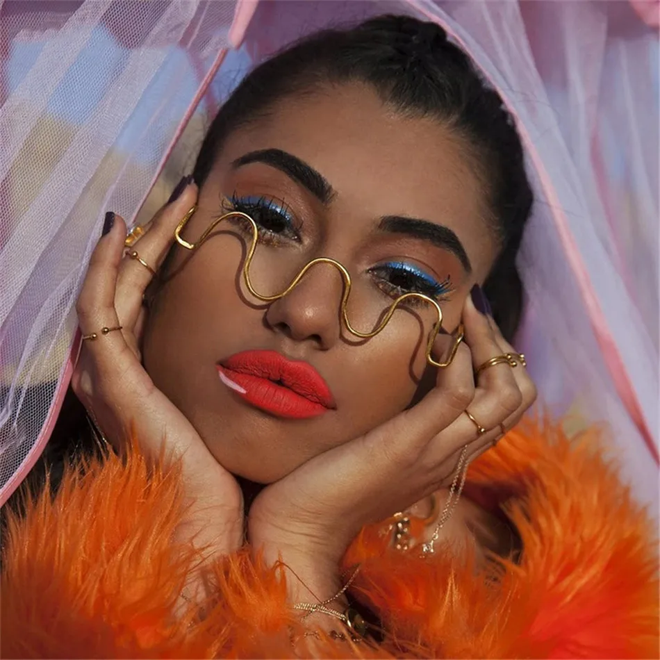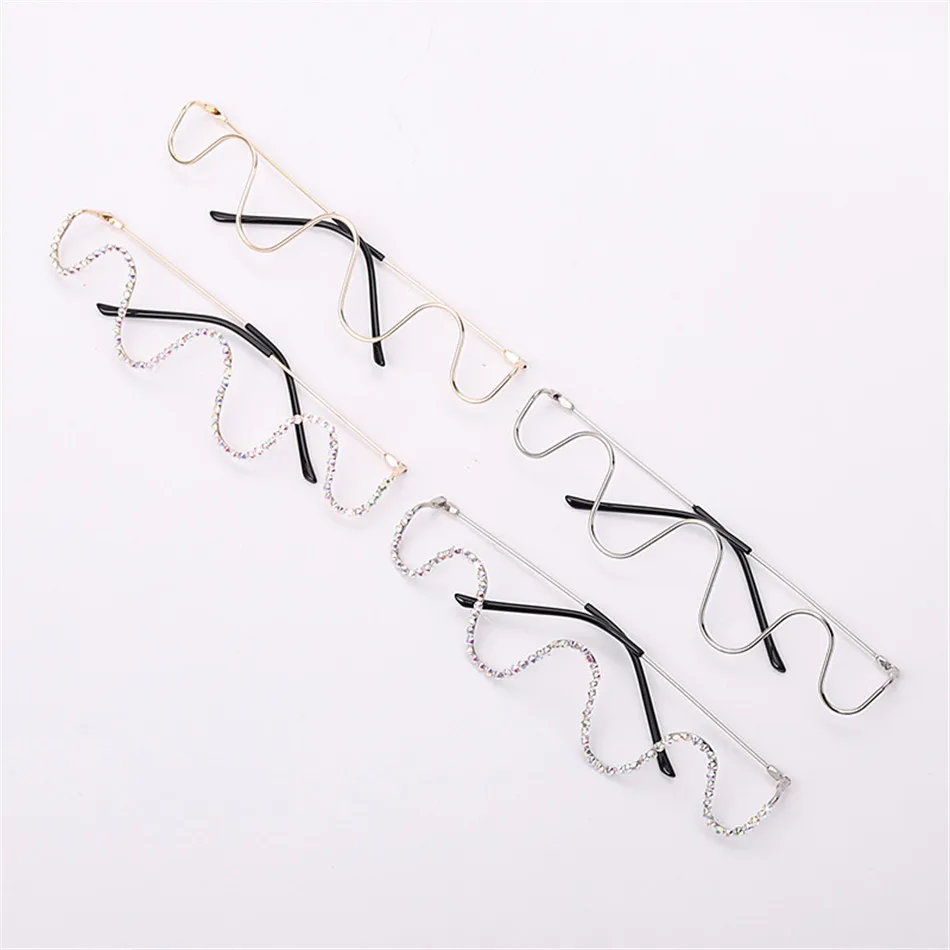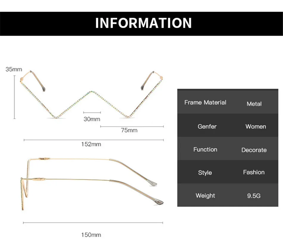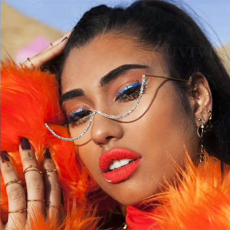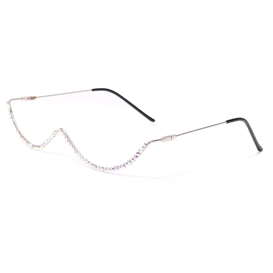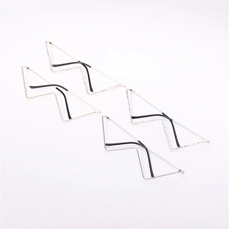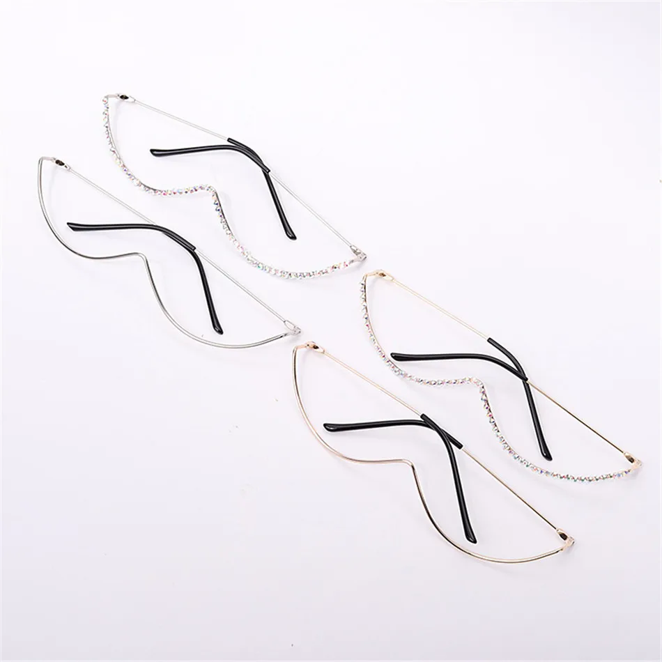 Женские очки в форме буквы V Ahora, с кристаллами, в стиле панк, половинная известность, оправы для очков без украшений для линз, мода 2020