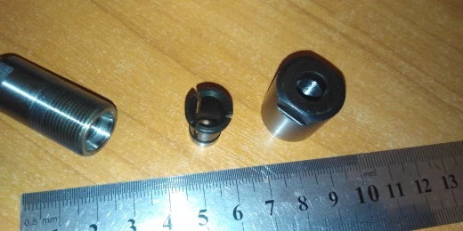 Товар пришел примерно за месяц. Сделан качественно. Фрезу зажимает хорошо. В работе с фрезером не пробовал. Не отслеживался. В принципе по внешнему виду могу рекомендовать.