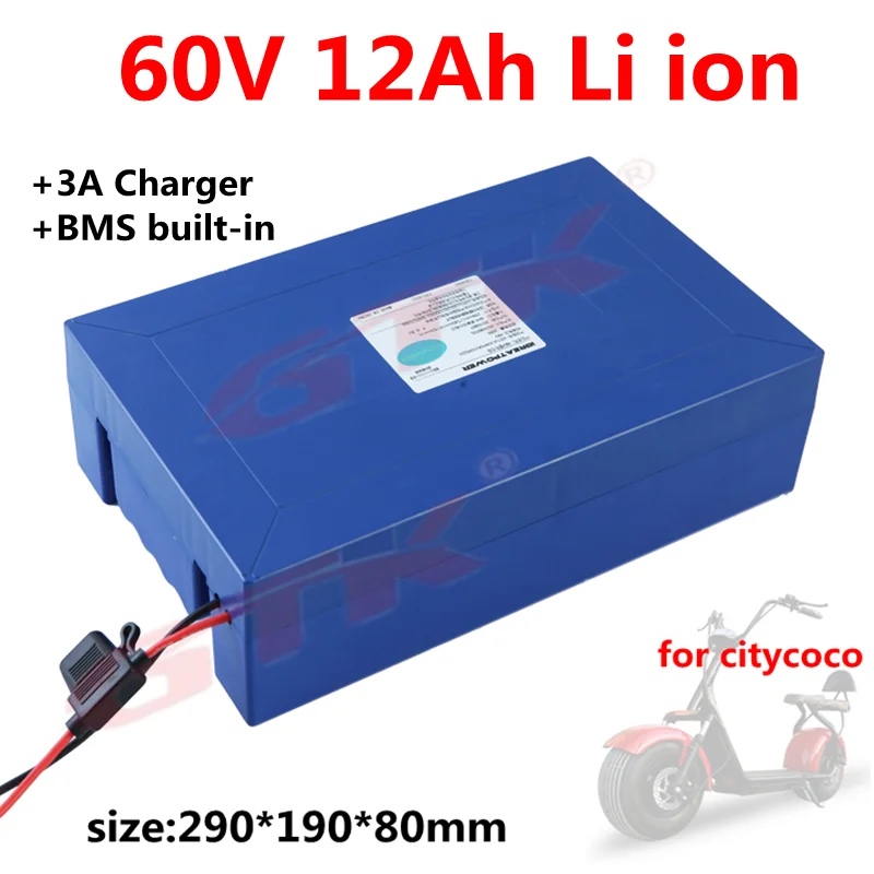 GTK портативный 60В 10ач 12Ач литий-ионный аккумулятор с bms для 2 колес citycoco ebike скутер + 3A зарядное устройство