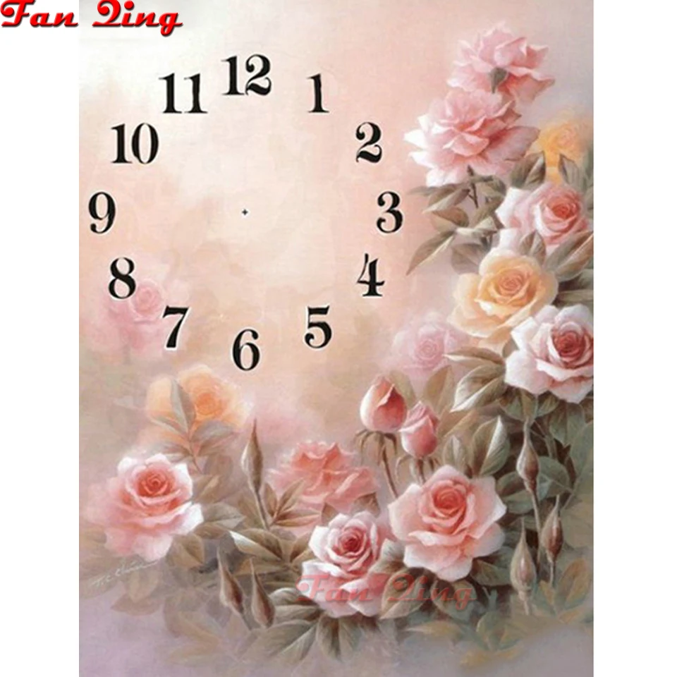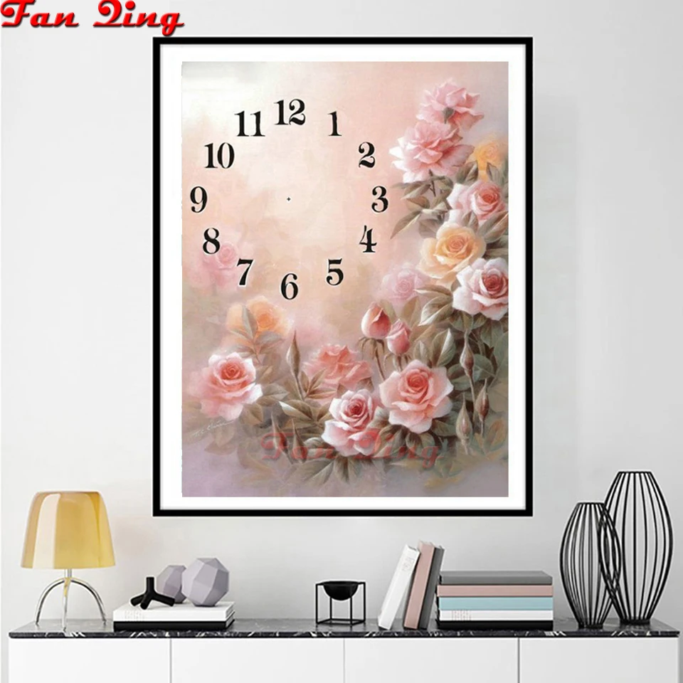 Розовые Настенные часы 5d алмазная картина крестиком для домашнего украшения 3d Стразы Алмазная мозаика вышивка