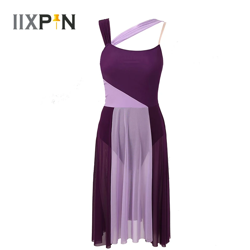 Женское лирическое современное танцевальное трико платье для взрослых, хорошая эластичная ткань. Тонкие регулируемые бретельки на бретельках с сетчатым наплечным слоем, с низкой спинкой и цветным блочным дизайном, застежка-липучка. Приталенная многослойная сетчатая юбка с разрезами для элегантного образа, длиной до колена. Пропускающее воздух, мягкое и удобное в носке изделие. Подходит для лирического танца или классического танца, танцевальных упражнений, соревнований и выступлений и т. д. Пожалуйста, проверьте информацию о размере перед покупкой, рекомендуется ручная стирка, машинная стирка.