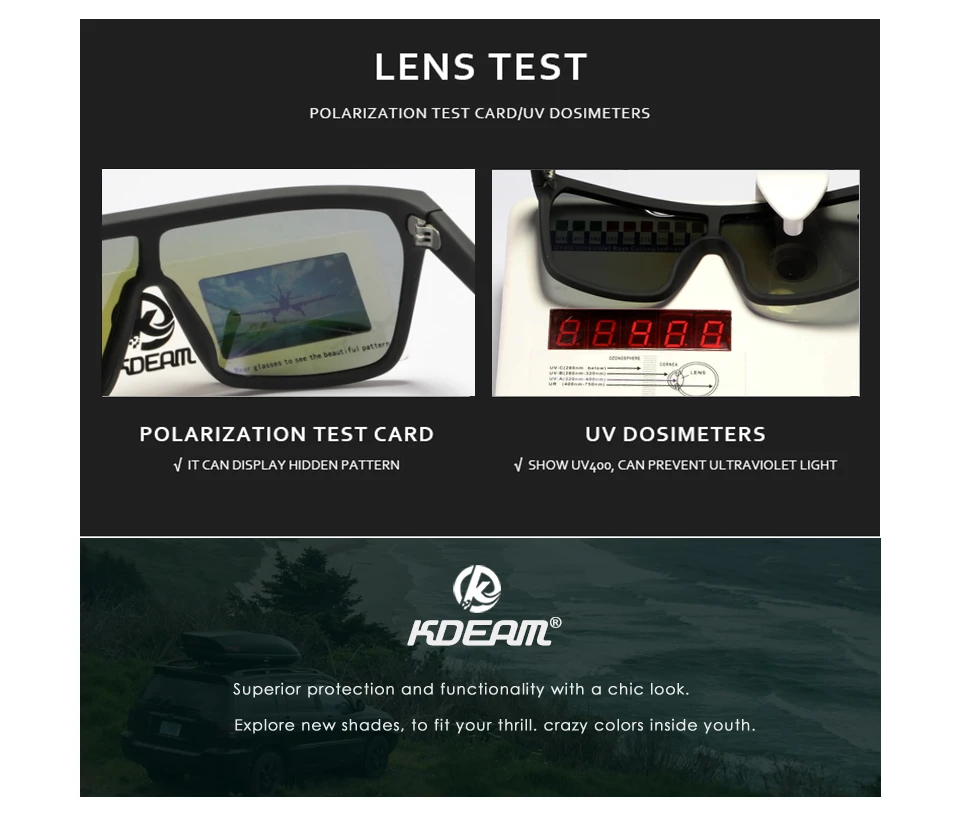 Мужские и женские солнцезащитные очки KDEAM, большие спортивные цельные поляризационные очки, для вождения, в коробке, 2020