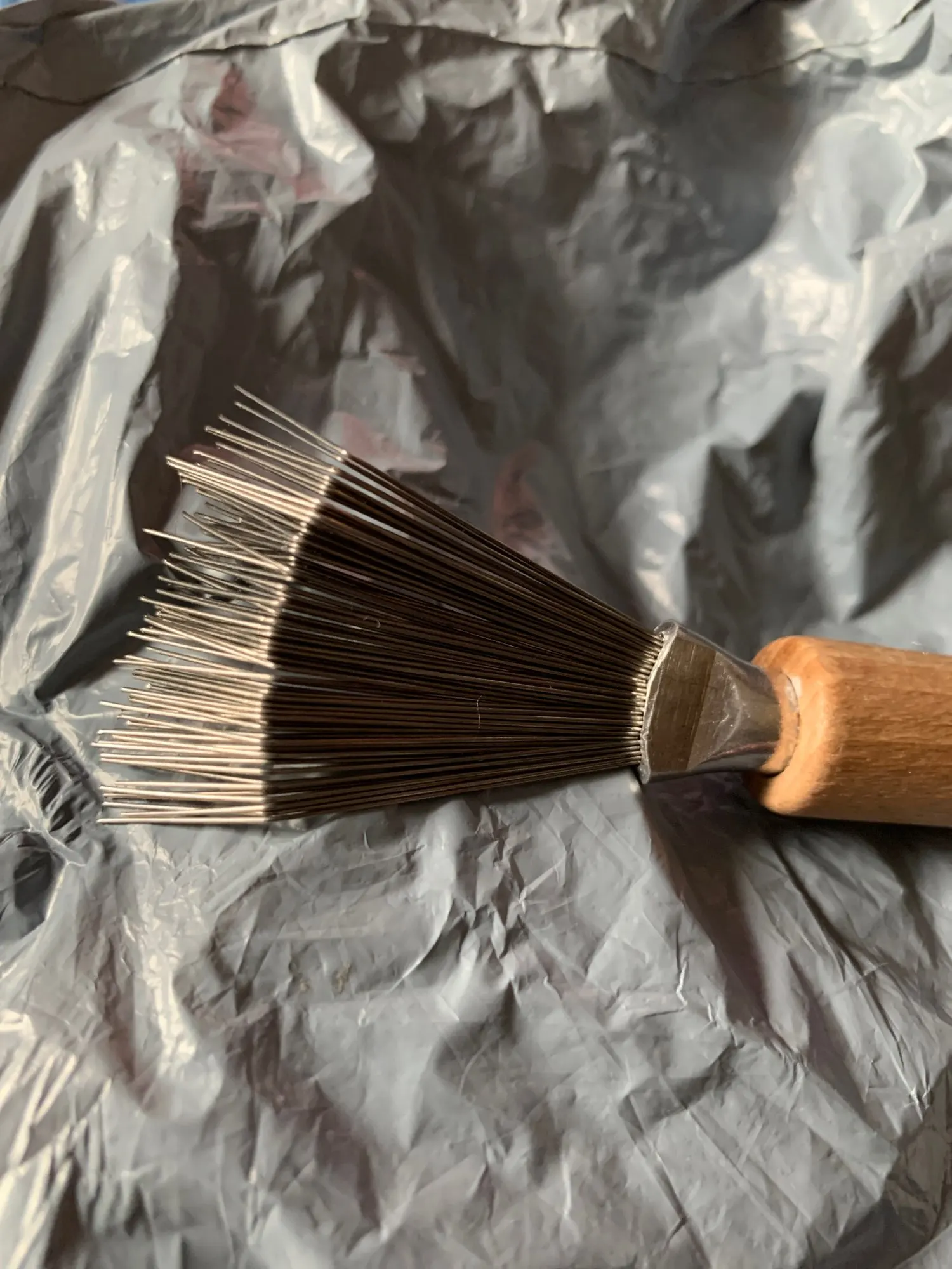 Заказано 2020-11-11, получено 2021-01-18. Доставка долгая. Упаковано нормально. При транспортировке изделие не повредилось. Ручка из дерева. Прутья из металла типа проволоки. Карманный вариант. К сожалению, полноценно не чистит от пыли щётку из натуральной щетины.