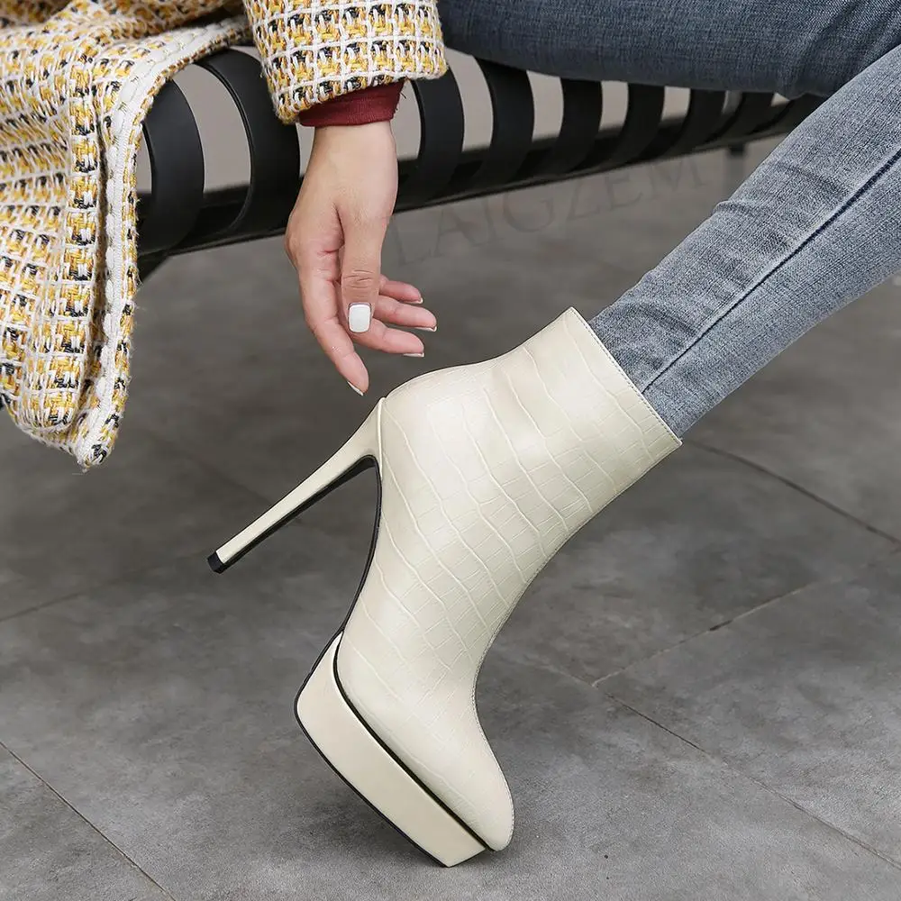 LAIGZEM супер женские ботинки со швами, с высоким на высоком каблук...