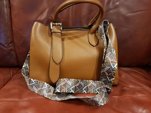 Пояс просто шикарный, НО блестящий, лащенный, матовый был бы лучше, конечно, но вообще крутой. Крепеж мощный, гораздо больше стандартного от сумки, точно не сломается в ближайшее время. Очень красиво выглядит. Регулировка может быть супер длинной, подойдет всем.