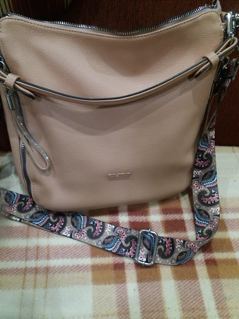 Рисунок чёткий, фурнитура хорошая. Выглядит классно. Скользкий, но особо не мешает.