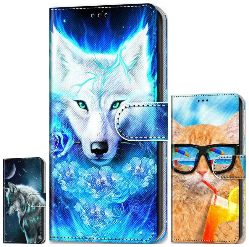 Animal Pattern Phone Holster Card Slot Cover Magnet Wallet Kitten Capa
