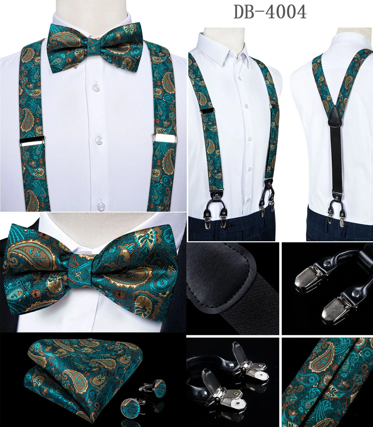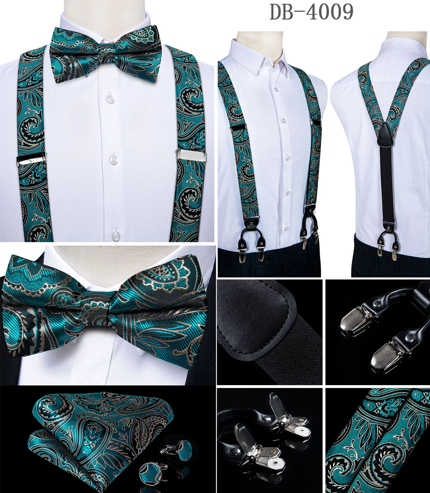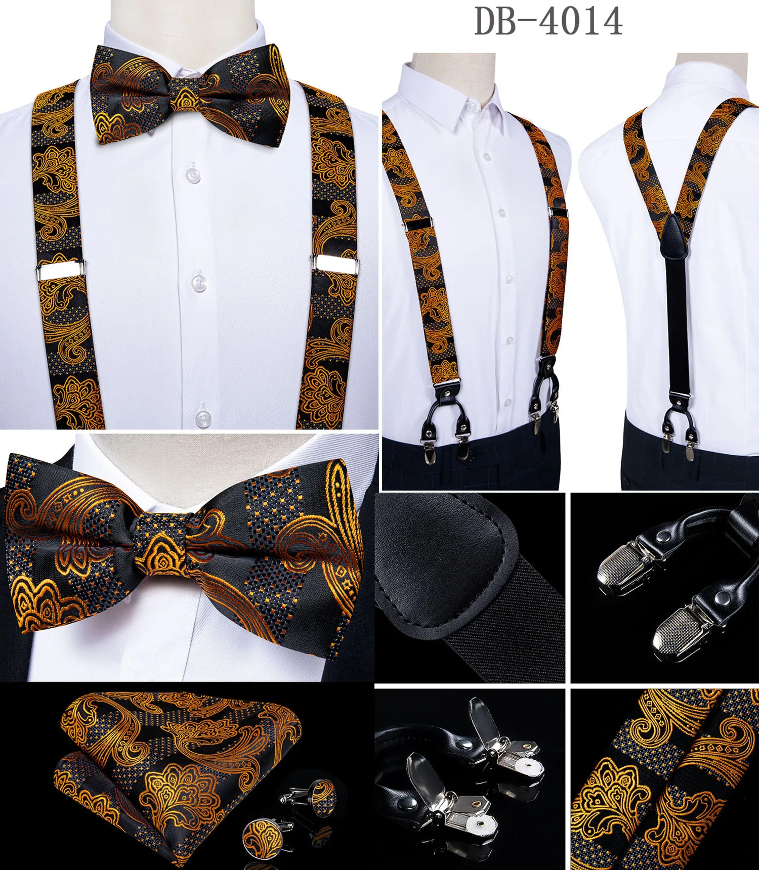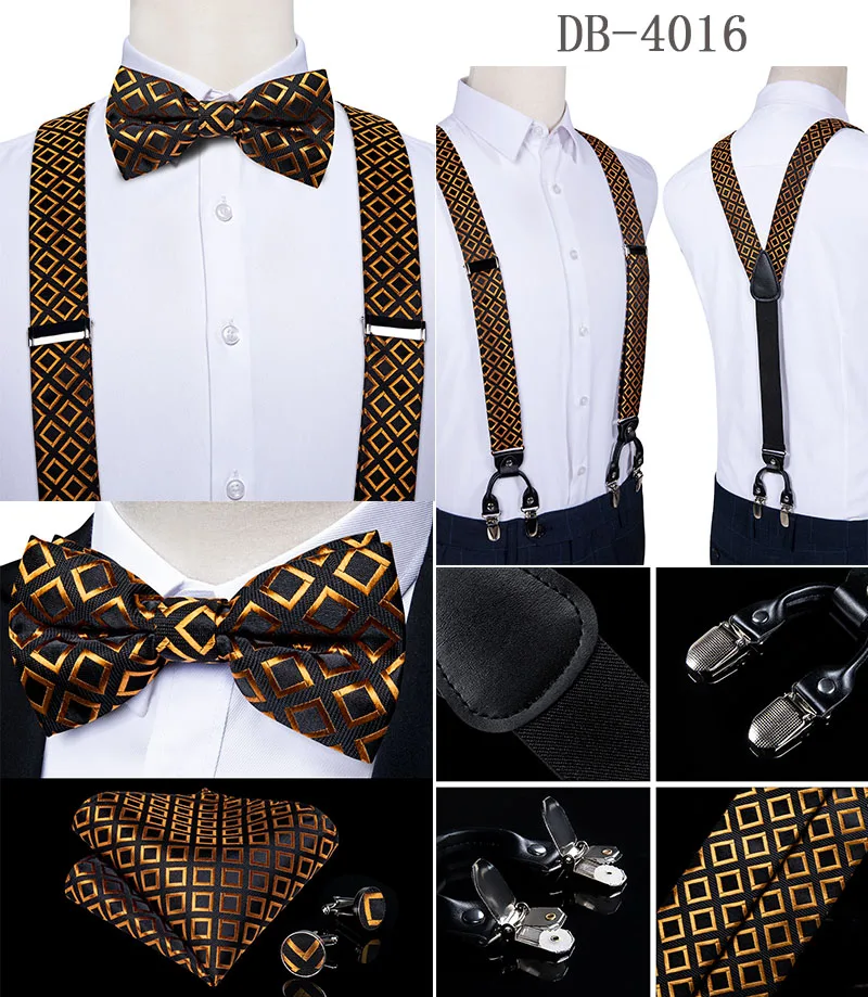 Мужские подтяжки 6 зажимы подтяжек Y-образная шелковая бриллиантовая брошь Карманный квадратный набор Свадебная вечеринка Мужские аксессуары DiBanGu