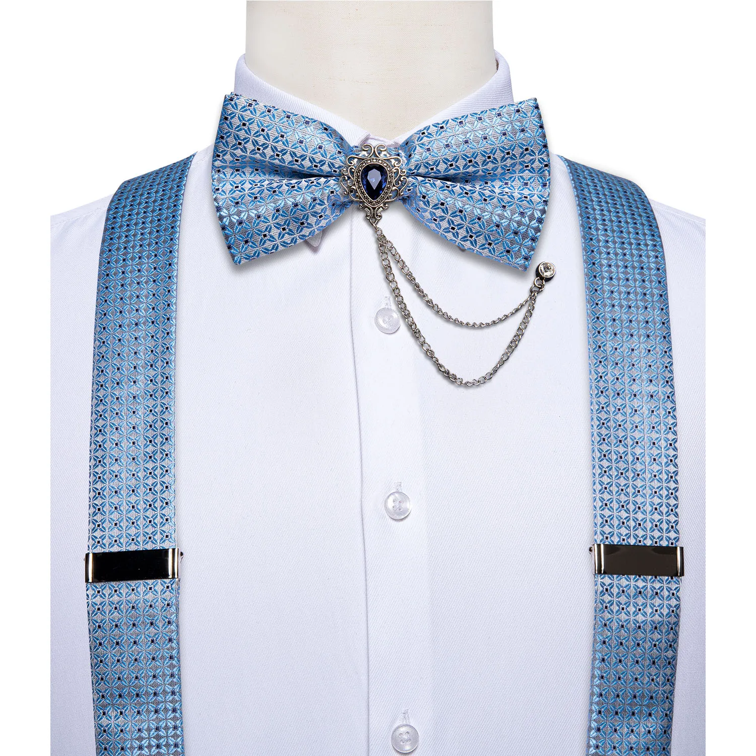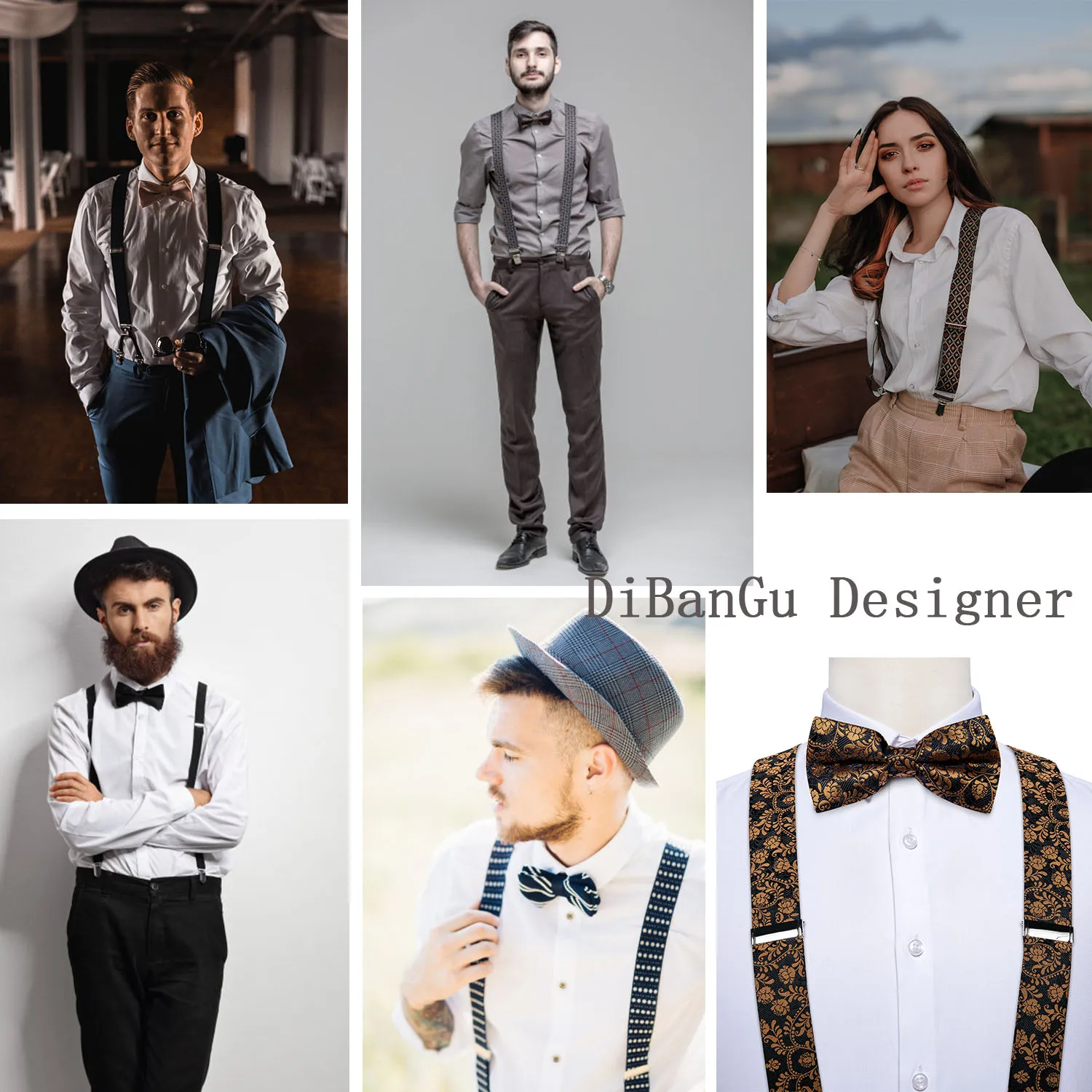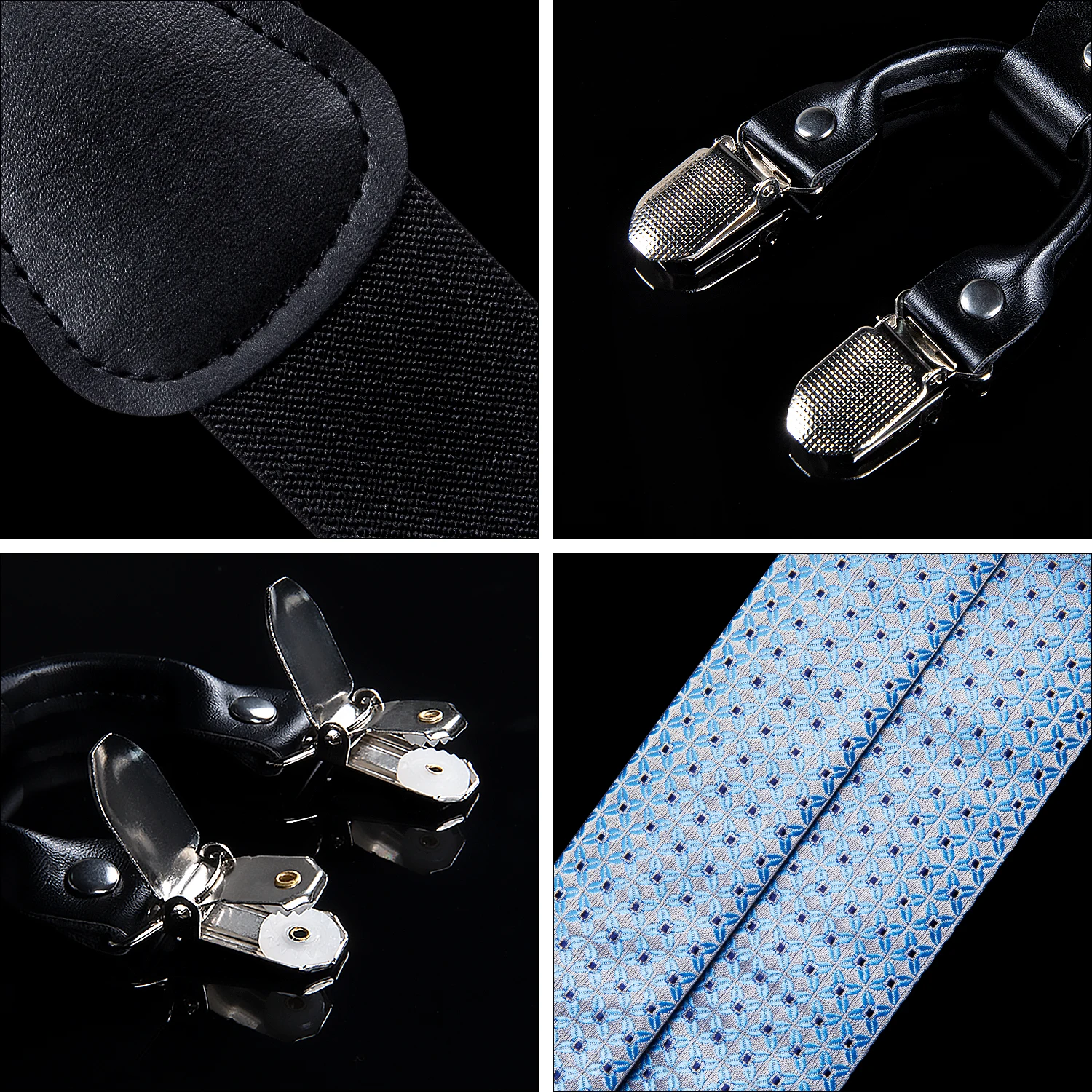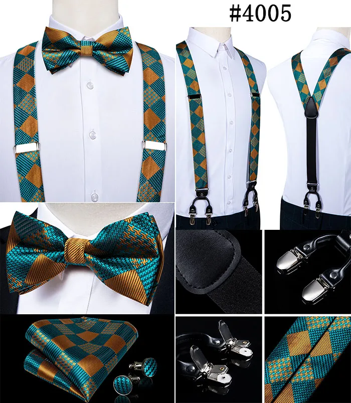 Мужские подтяжки 6 зажимы подтяжек Y-образная шелковая бриллиантовая брошь Карманный квадратный набор Свадебная вечеринка Мужские аксессуары DiBanGu