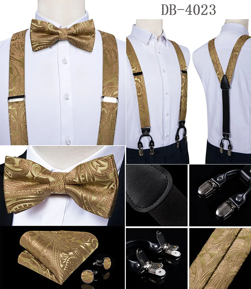 Item Contains1*Suspender+1*Bow Tie+1*Hanky+1 Pair Cufflinks