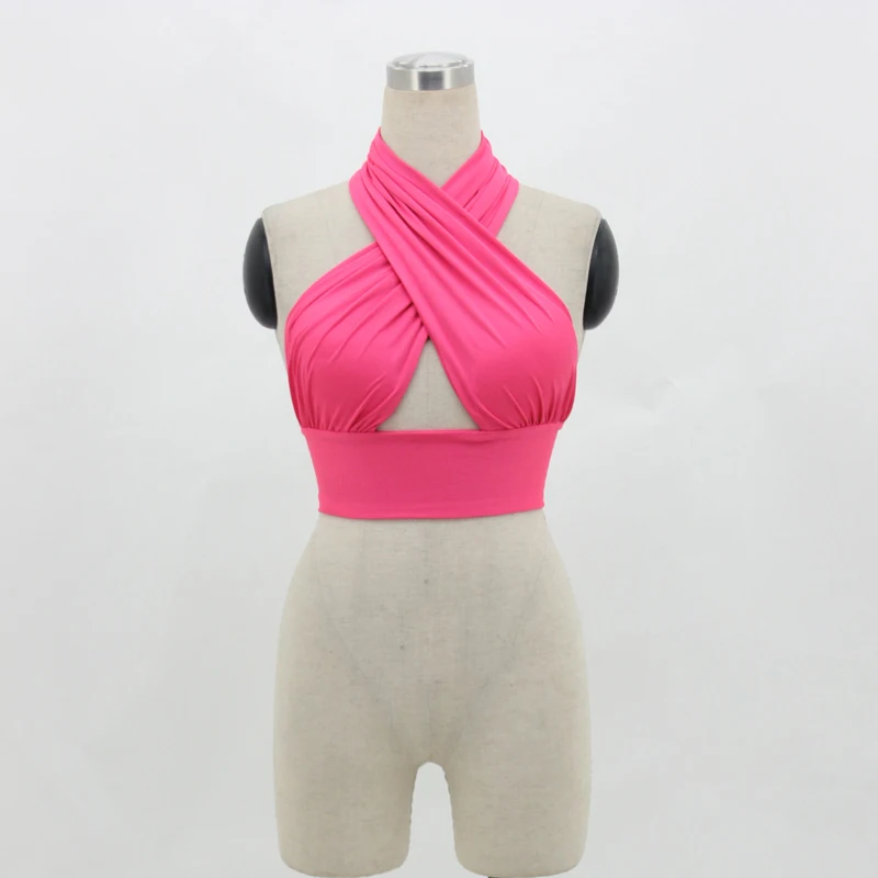 Женский укороченный топ на бретелях с вырезом спереди, с открытой спиной, без рукавов